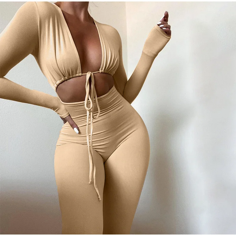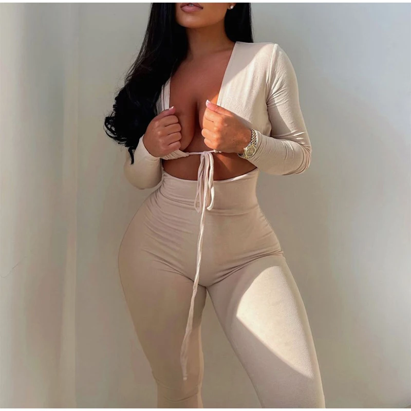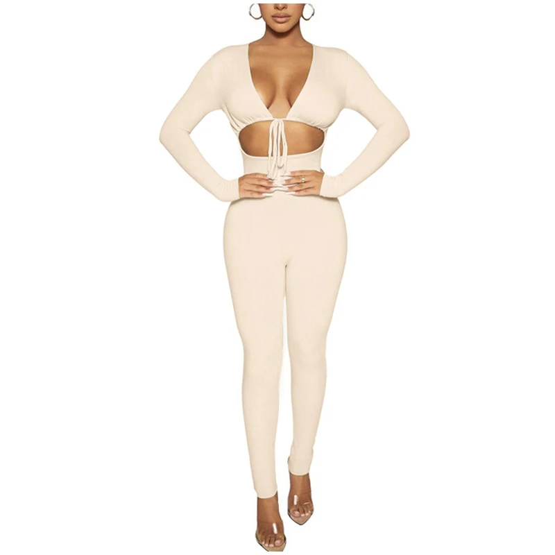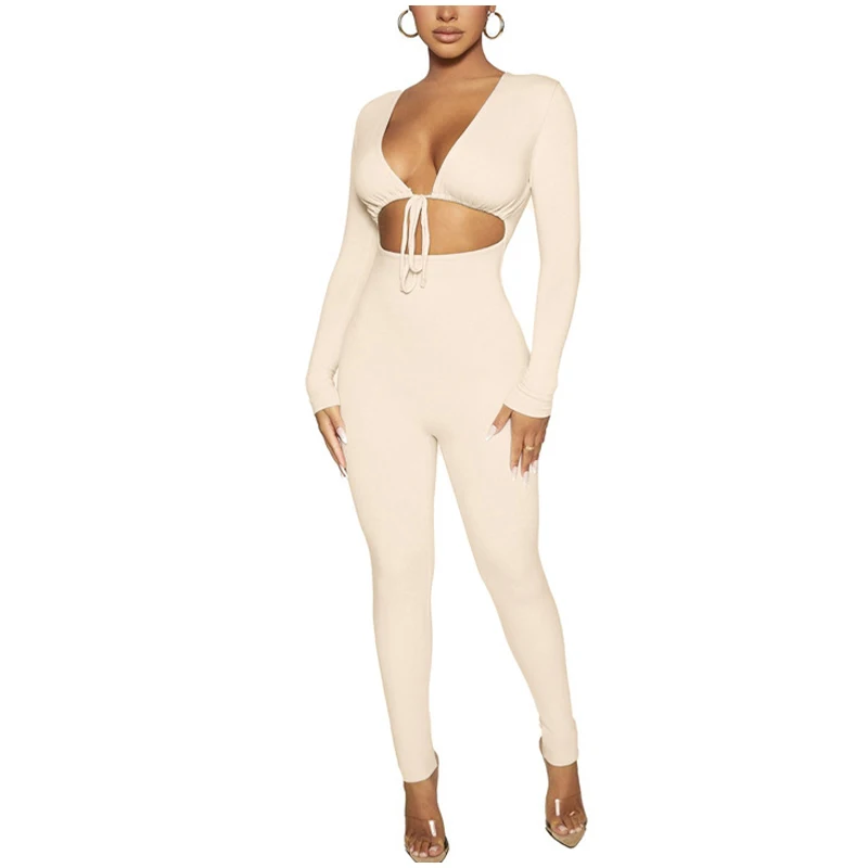 Женский Повседневный Комбинезон, белый Облегающий комбинезон с длинным рукавом и вырезами, со шнуровкой, модель 2021