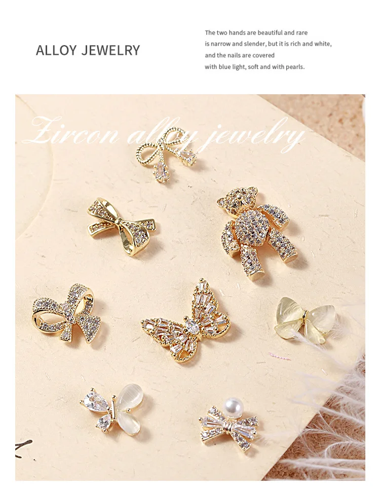 2 шт. металлические подвески заклепки украшения для ногтей аксессуары, медведь/бант/украшения в виде бабочек Для маникюра Циркон Стразы ювелирные изделия # SS13
