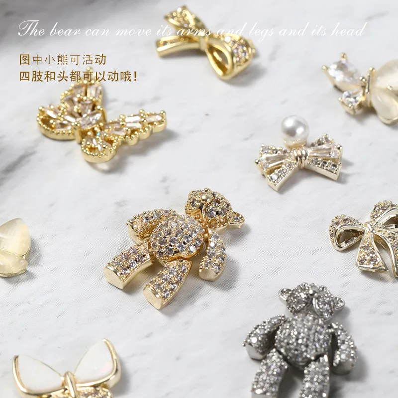 Name 02Shiny Zircon Alloy Bear 3D Nail Decorations With Heart Crystal