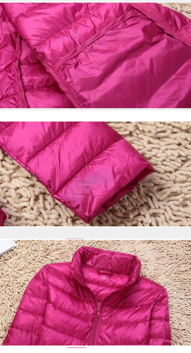 Новинка 2021, женский тонкий пуховик, ультралегкие куртки на белом утином пуху с воротником-стойкой, теплые пальто на осень и зиму, портативная верхняя одежда