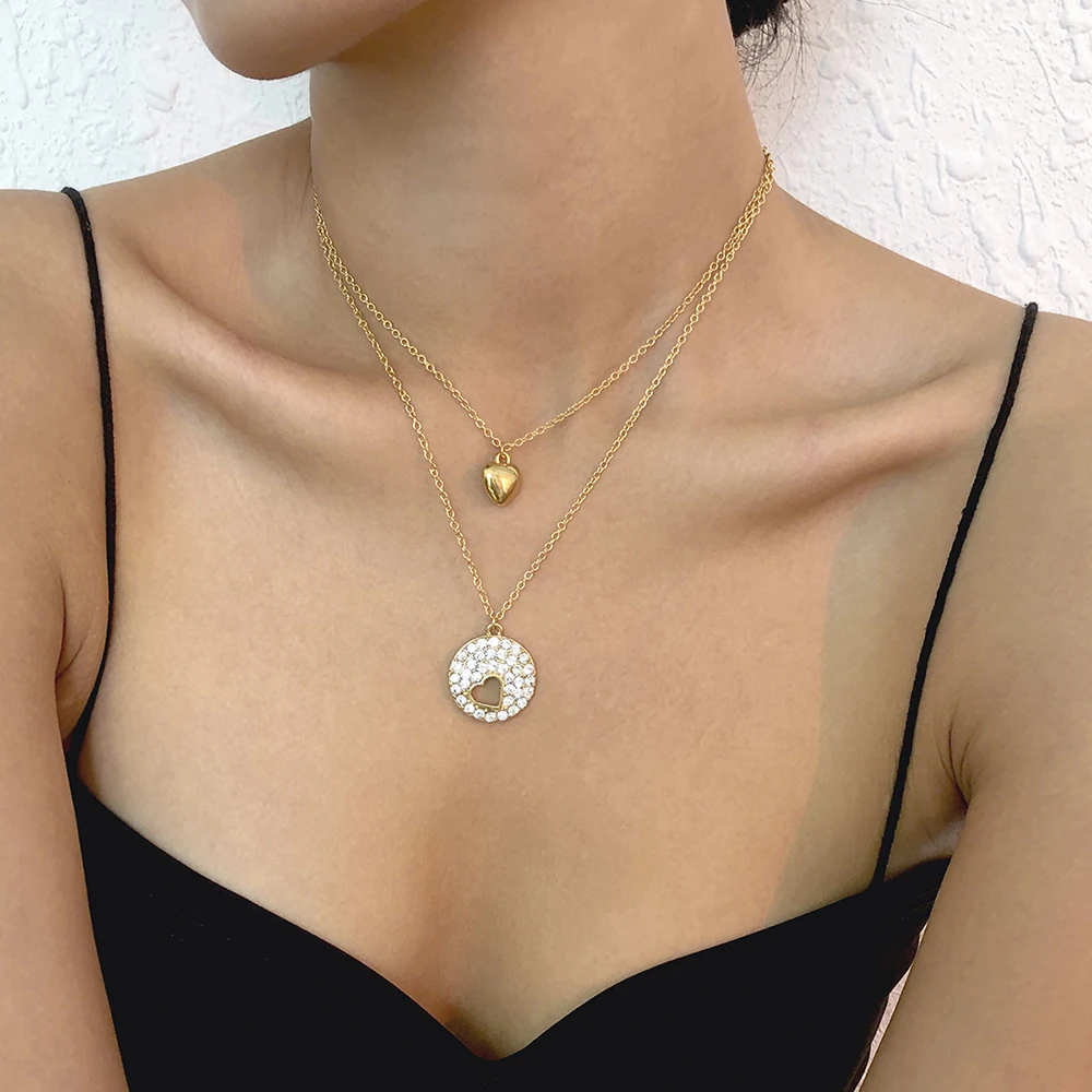 Lalynnly акриловые монеты полые сердце кулон ожерелье набор дизайнер для женщин Любовь Стразы ожерелье оптовая продажа украшения на шею N8630-Особенности: Мода