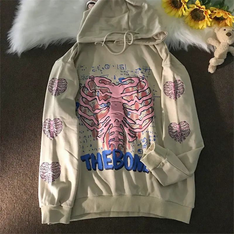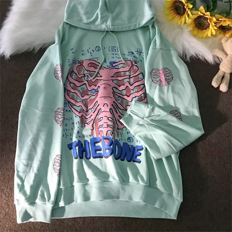 Женский Свободный свитшот CoyeeCat Y2K, с принтом черепа и длинным ...
