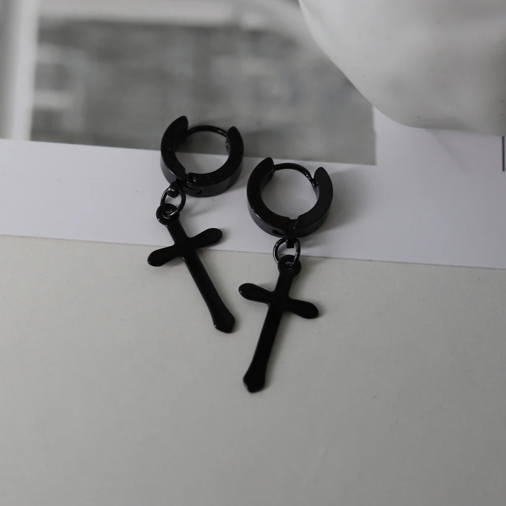 Модные мужские серьги-подвески в виде креста из нержавеющей стали, висячие серьги в стиле панк, ювелирные изделия для крутых женщин, девушек, подарки дружбы