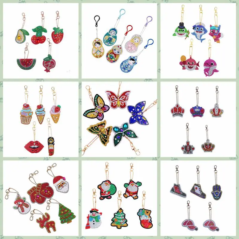 Брелок для ключей с алмазной живописью особой формы, 5 шт.