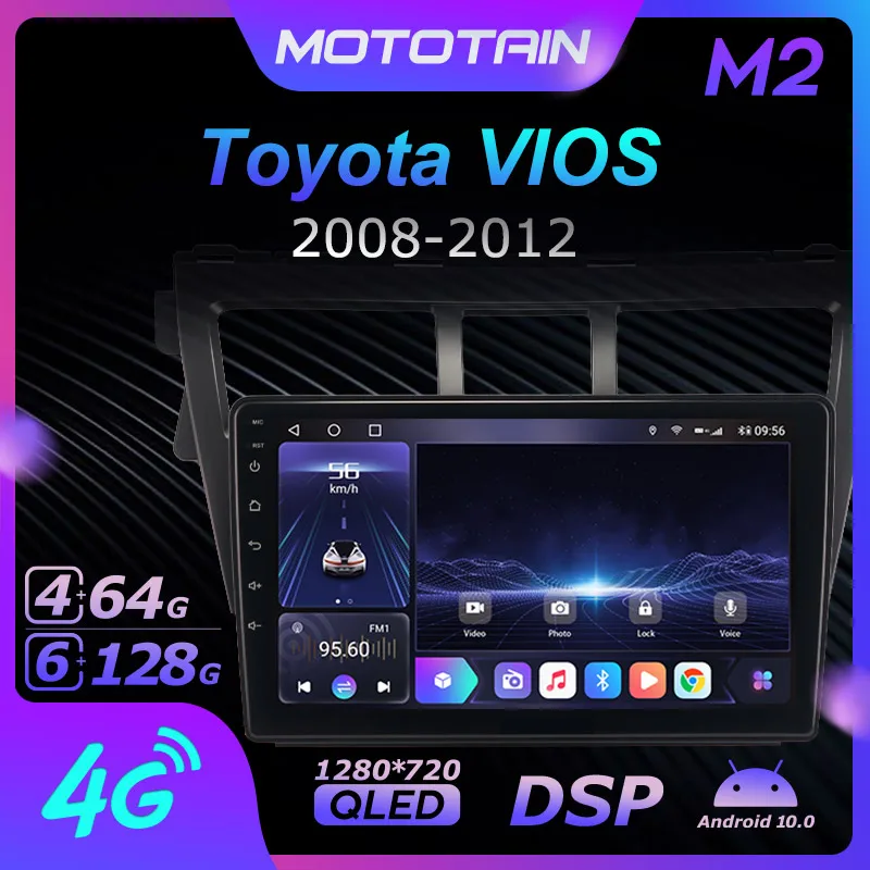 Автомагнитола 6G + 128G, Android 10,0, GPS для Toyota VIOS 2008-2012, GPS навигационная система с 4G LTE DSP SPDIF BT 5,0 1280*720
