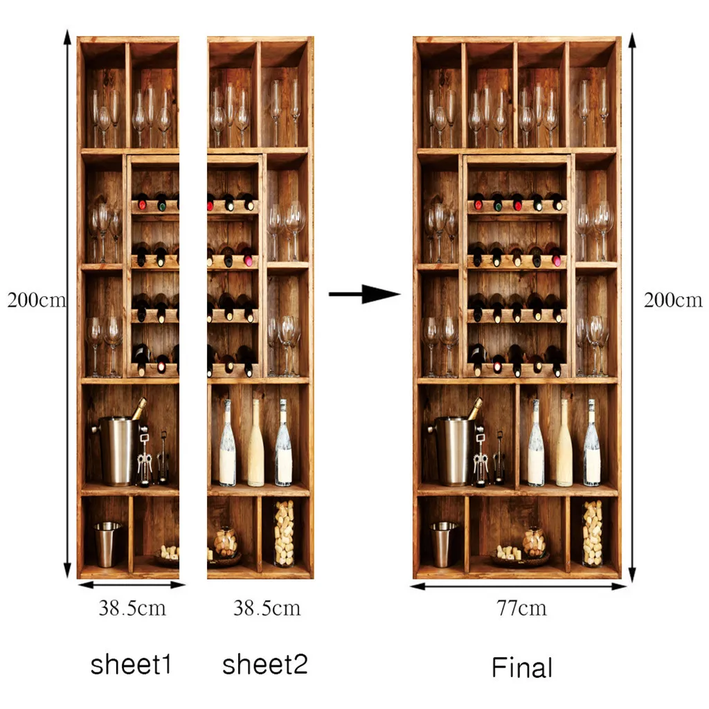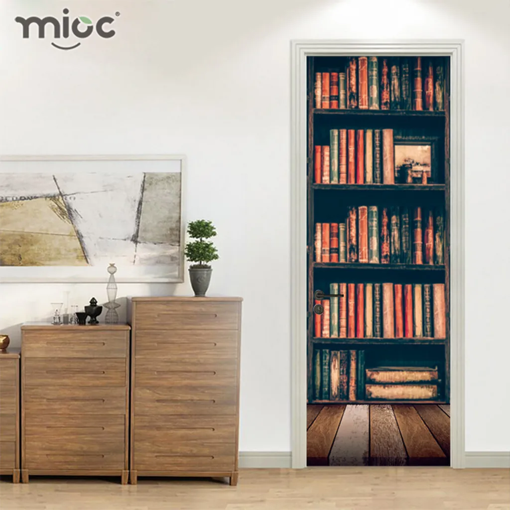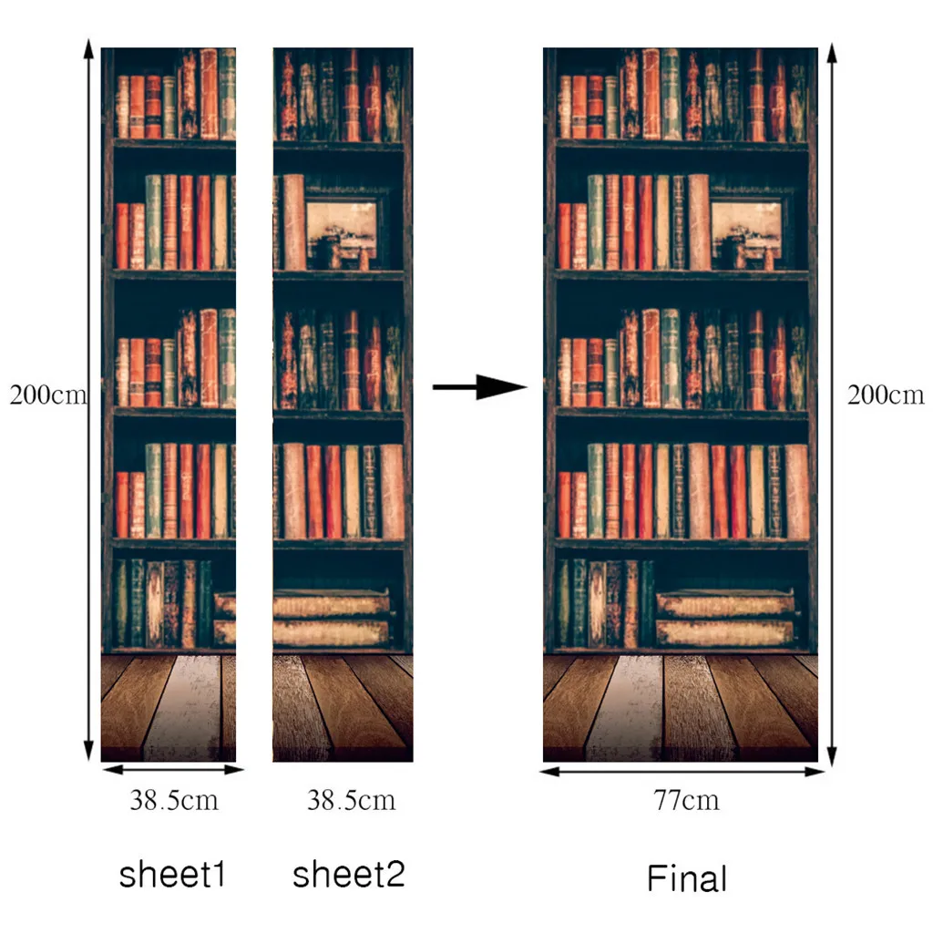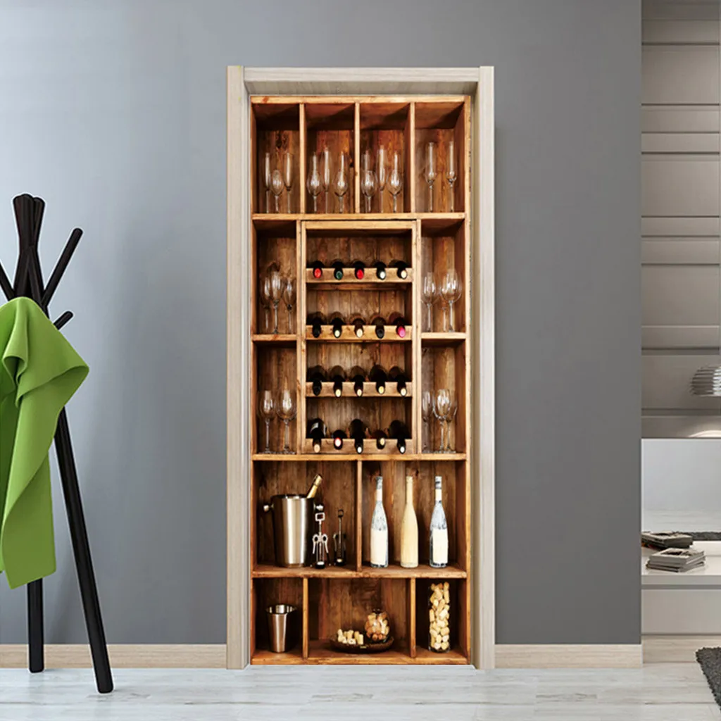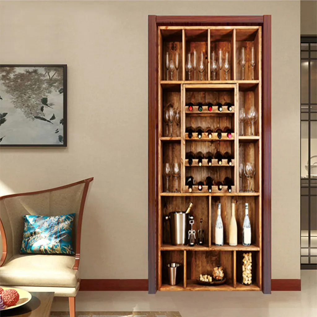 Пвх дверная наклейка, винтажная деревянная книжная полка, барная стойка, настенные наклейки, 3D Декор, пейзаж, художественные обои на дверь, настенные наклейки
