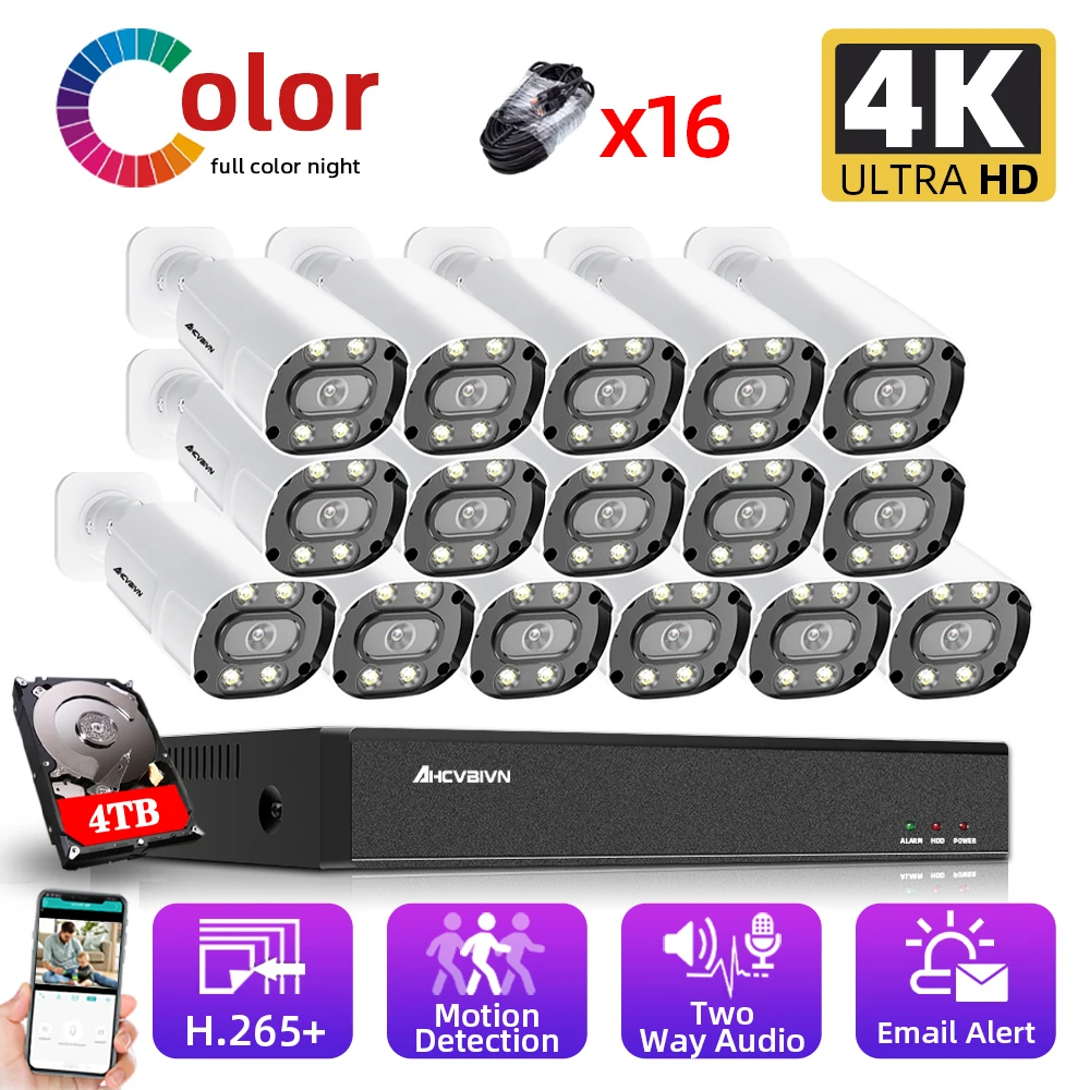 H.265 + 4K 8CH POE NVR комплект 16CH 8mp камера видеонаблюдения системы безопасности наружная двусторонняя аудио POE IP пулевая камера видеонаблюдения