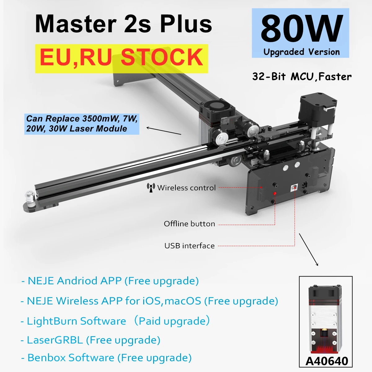 Лазерный гравер с ЧПУ NEJE Master 2s Plus, станок для резки древесины, фанеры, МДФ, Bluetooth, лазерный фрезерный станок Lightburn, 80 Вт