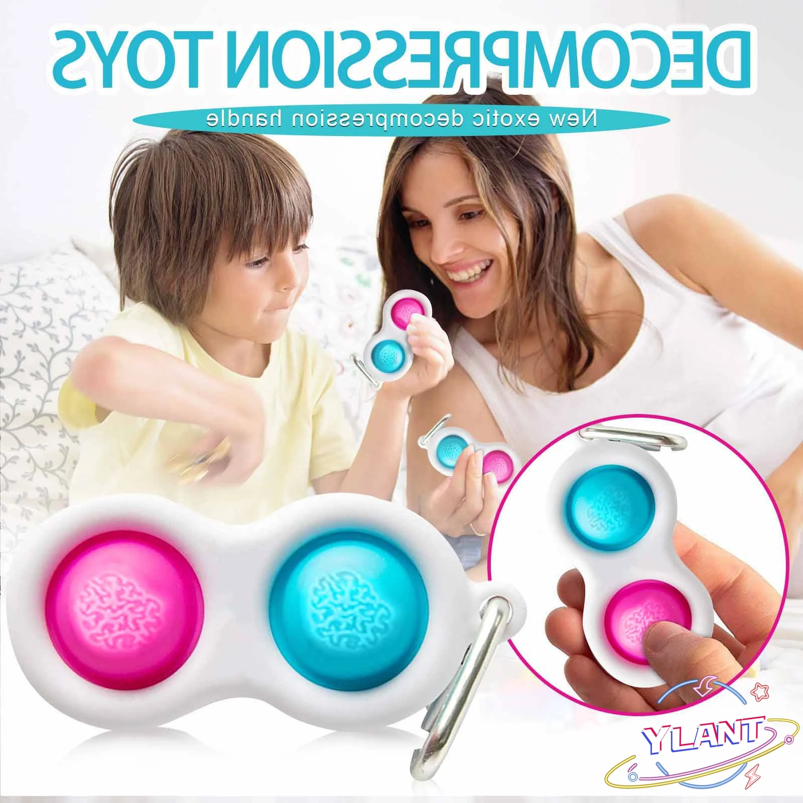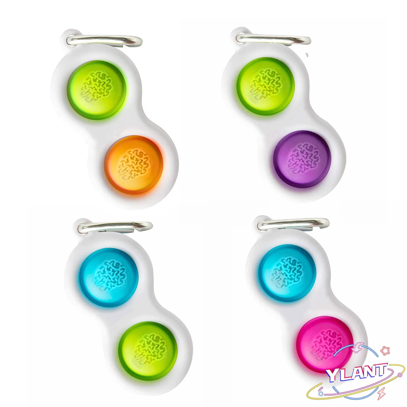 Уникальный брелок с силиконовыми аксессуарами; Бесконечные часы раздражения!Раздраженные пальцы не опускаются! Мини-зажим можно легко прикрепить к ключам, кошелькам, рюкзакамОчень подходит для взрослых старше 3 лет; Кнопки изготовлены из 100% силикона; Рамка изготовлена из высококачественного АБС-пластикаПоощряйте тактильную стимуляцию, спокойствие и концентрацию; Простая радость, которая неотразима!4 цветовых сочетания; Упаковка без разочарования