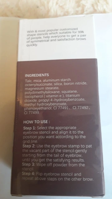 Давно хотела попробовать что нибудь новенькое для своих бровей, периодически меняю производителей косметики, так как всегда в поиске самого идеального результата. Хочется смазку отметить, что оттенок я выбрала самый светлый и для меня он подошел идеально, удобные трафареты- легко использовать и наносить. В принципе товар полностью соответствует тому, что написано в описании у продавца. Идеальные брови- теперь это легко, просто найдите свой подходящий оттенок. Доставка быстрая около трех недель. Спасибо.