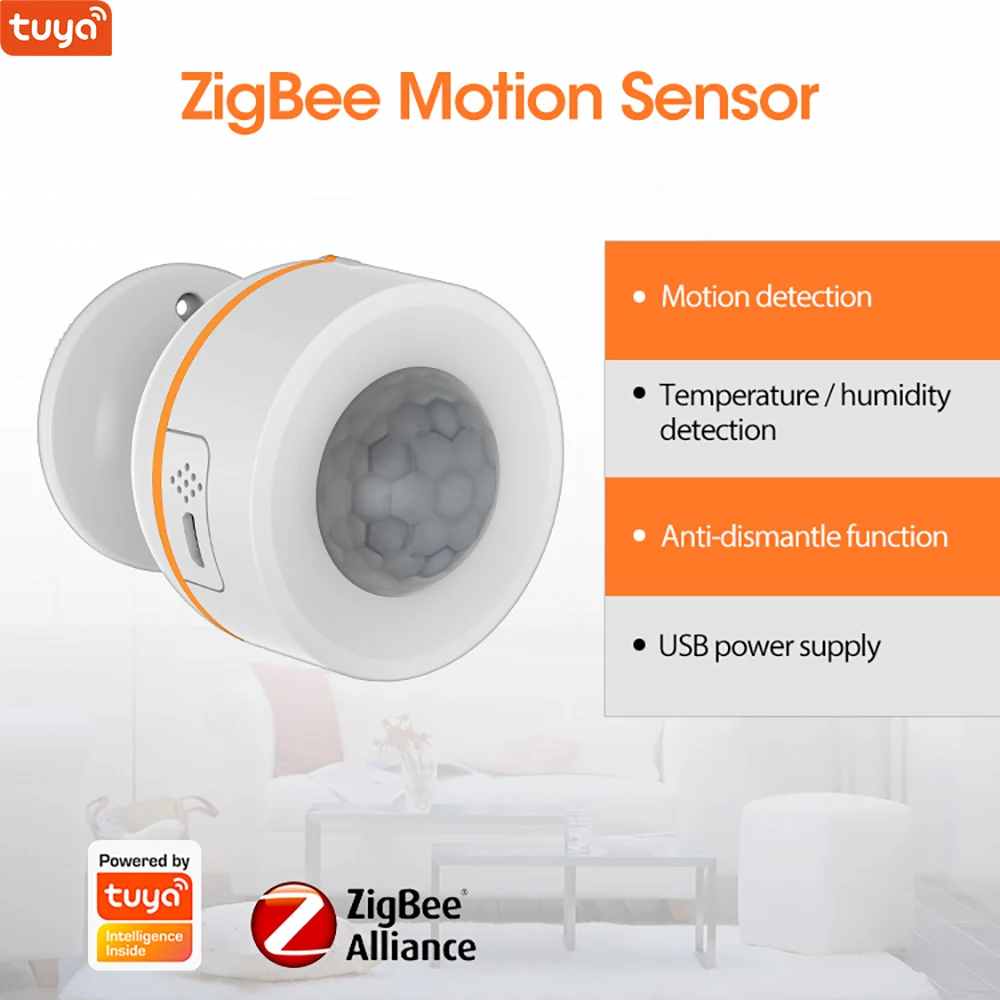 Tuya Zigbee умный PIR датчик движения, детектор безопасности человекаВстроенный датчик температуры и влажности, работает с приложением Tuya Smart Life