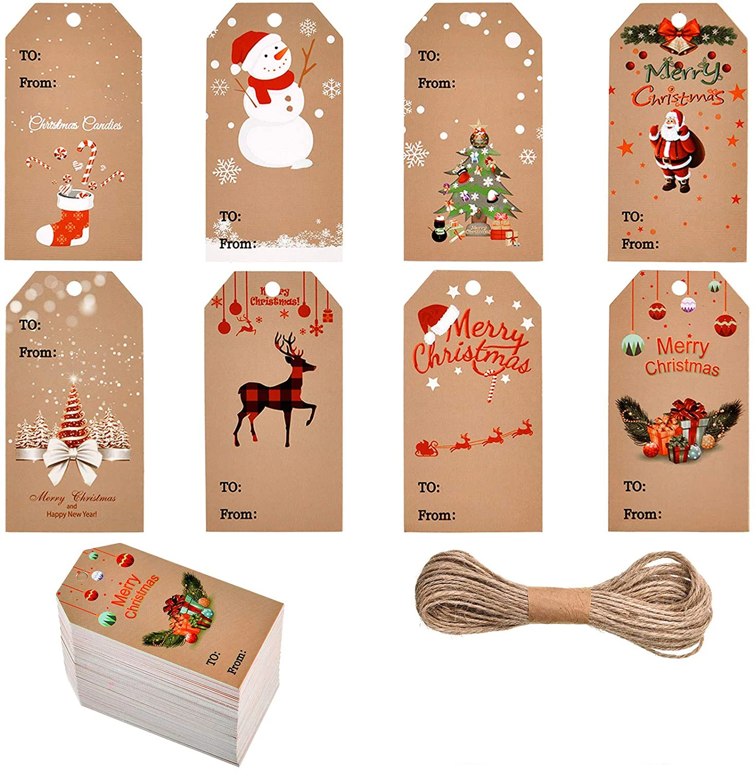 Коричневые крафт-бумажные бирки для рождественских подарков с рождественскими украшениями для домашнего шпагата на гладкие и wendding праздничные ярлыкиНаши крафт-бумажные бирки для рождественских подарков придают дополнительный оттенок праздничному духу! Гладкий для письма и в классическом рождественском дизайне, как Рождественский чулок, Рождественская шляпа, елка Xm, снежинка и снеговик. Они идеально подходят для одевания ваших тщательно обернутых подарков!Прямоугольная бирка размером примерно 1,2 дюйма в ширину х 2 дюйма в высоту.