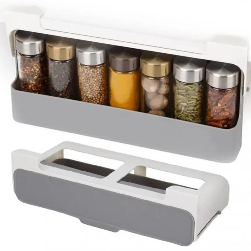 Со шкафом часто в премиум-класса, под полкой spice organizer дизайн использует неиспользованное пространство под полкой. Имеет умный выдвижной отсек, который вмещает до семи стандартных банок для специй (не входит в комплект).