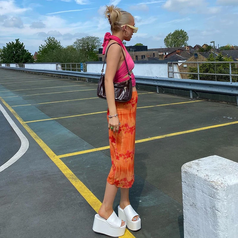 Милая юбка макси с цветочным принтом, женские сексуальные винтажные оранжевые прямые юбки в стиле Харадзюку, эстетичная шикарная одежда для гранж