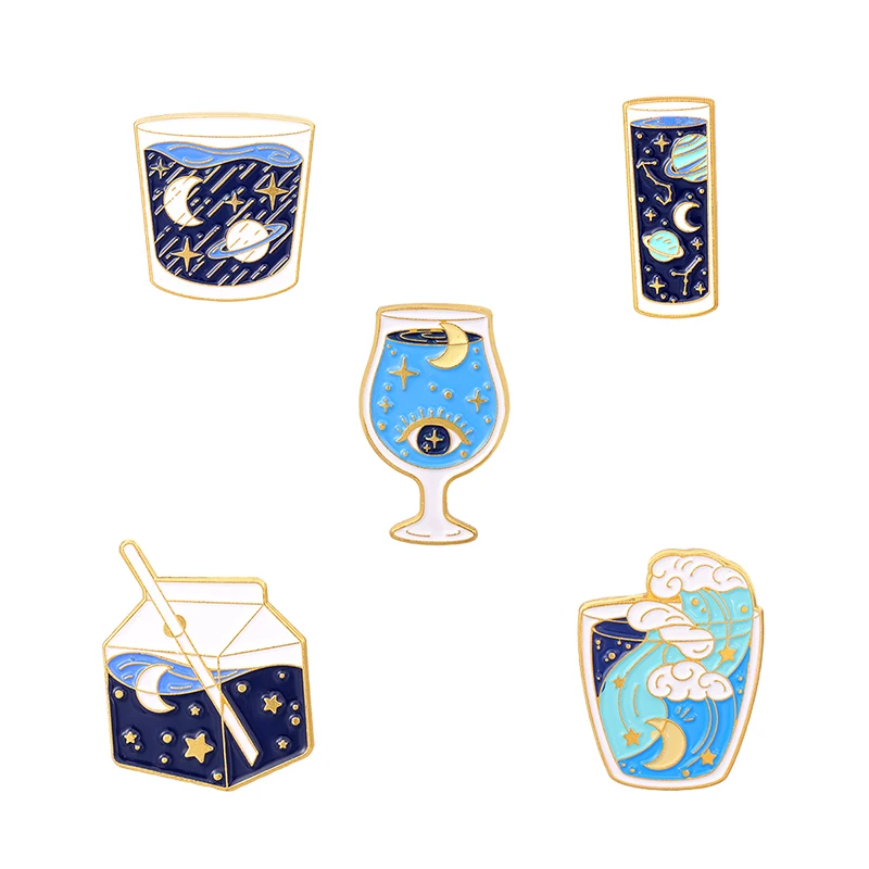 Эмалированная булавка с изображением в чашке, броши с изображением океана, Луны, звезд, молока, картона, обычная детская одежда, мультяшный значок, подарок для друзей