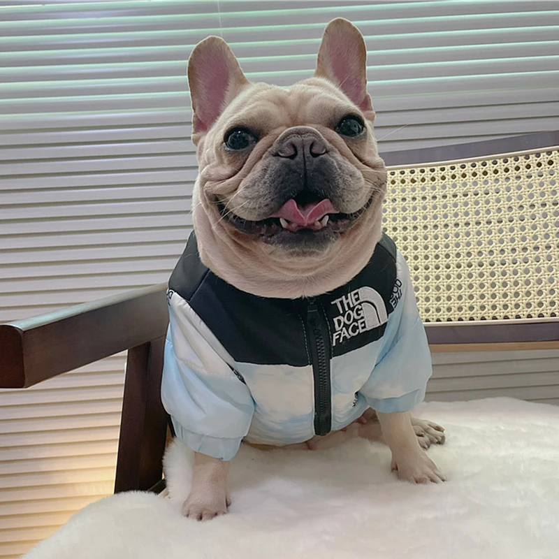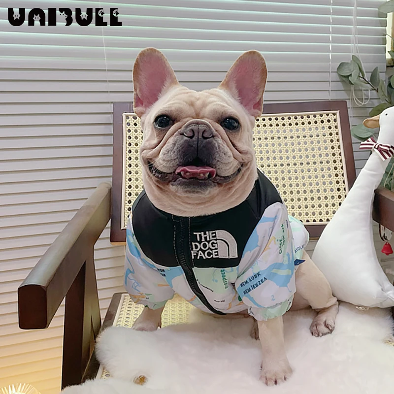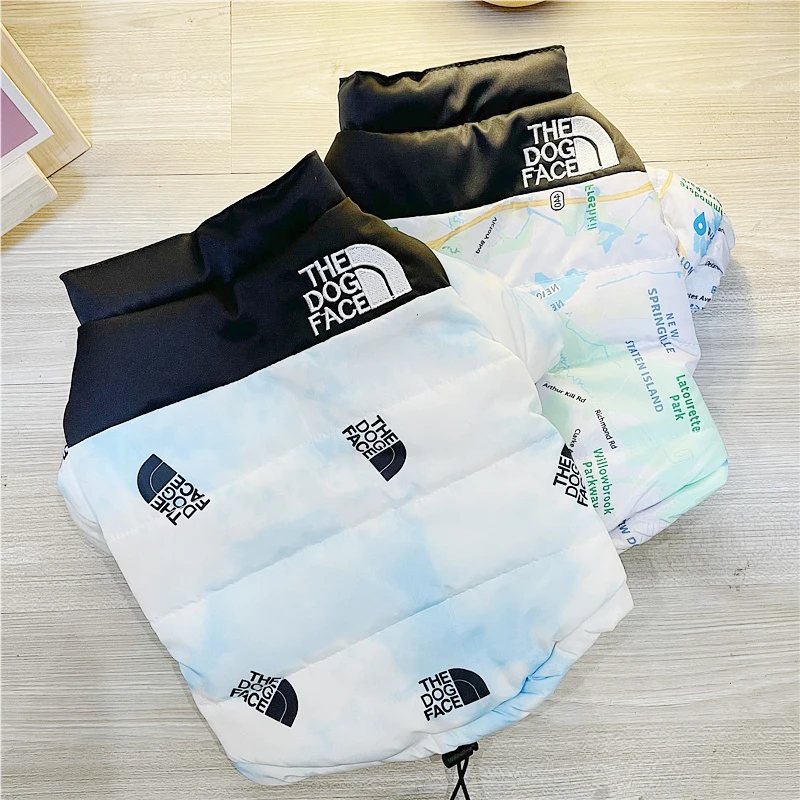 Новейшие модели 2021 года, зимнее теплое пальто для домашних питомцев, водонепроницаемая куртка для собак, модное лицо собаки, костюм для кошек и щенков с узором, одежда