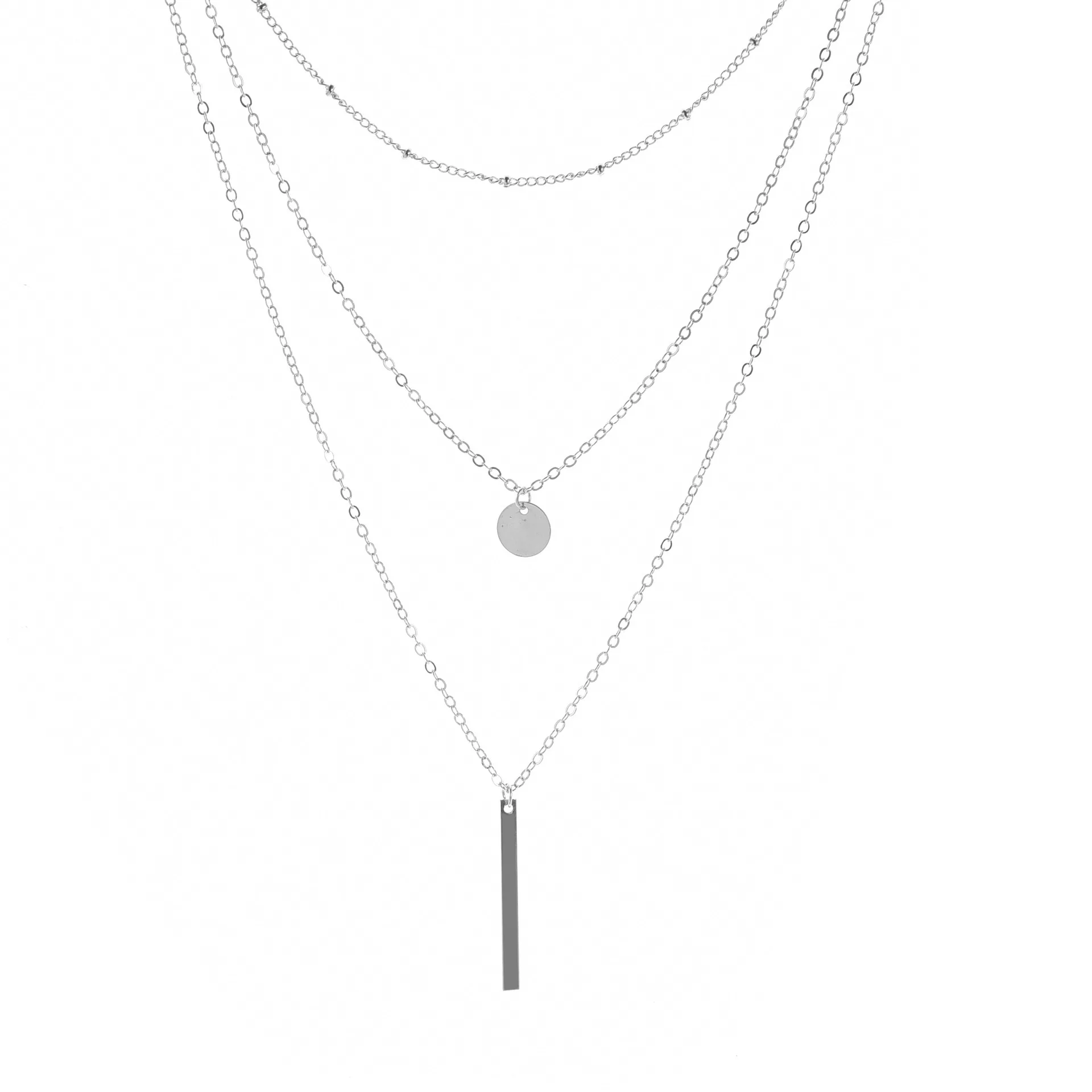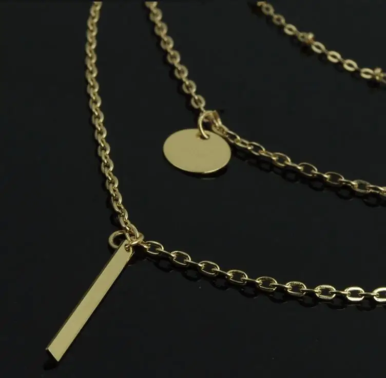 Ожерелье женское, ювелирное изделие, цепочка до ключиц, 1 шт., в европейском стиле, с многослойным покрытием простой: золото, серебро
