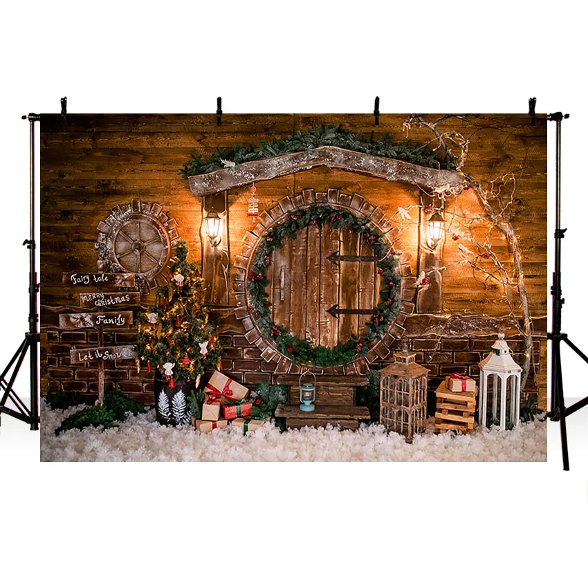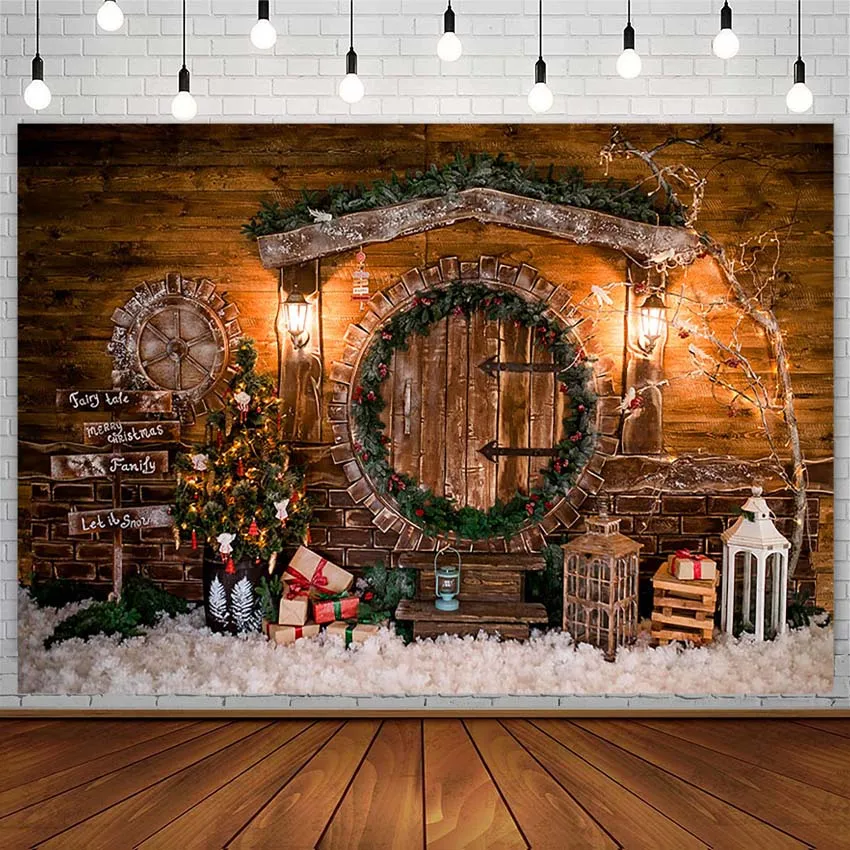 Рождественский фон деревянный дом Дети фотография Реквизит Кролик к...