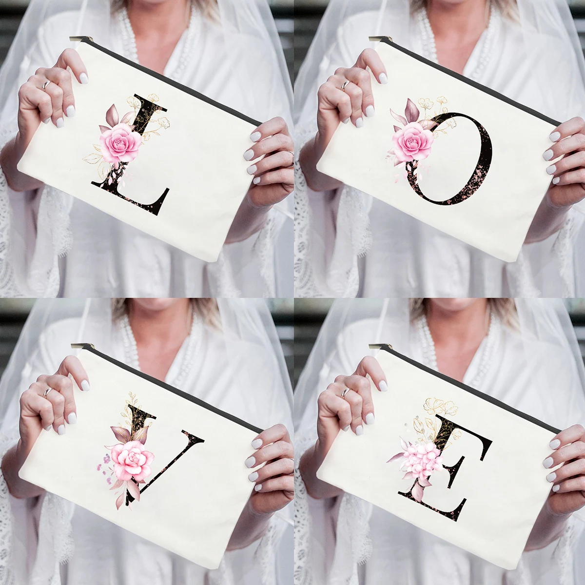 Розовые цветочные розы инициалы женские свадебные косметички на молнии сумка Персонализированная для подруги невесты подарок предложение вечерние косметички