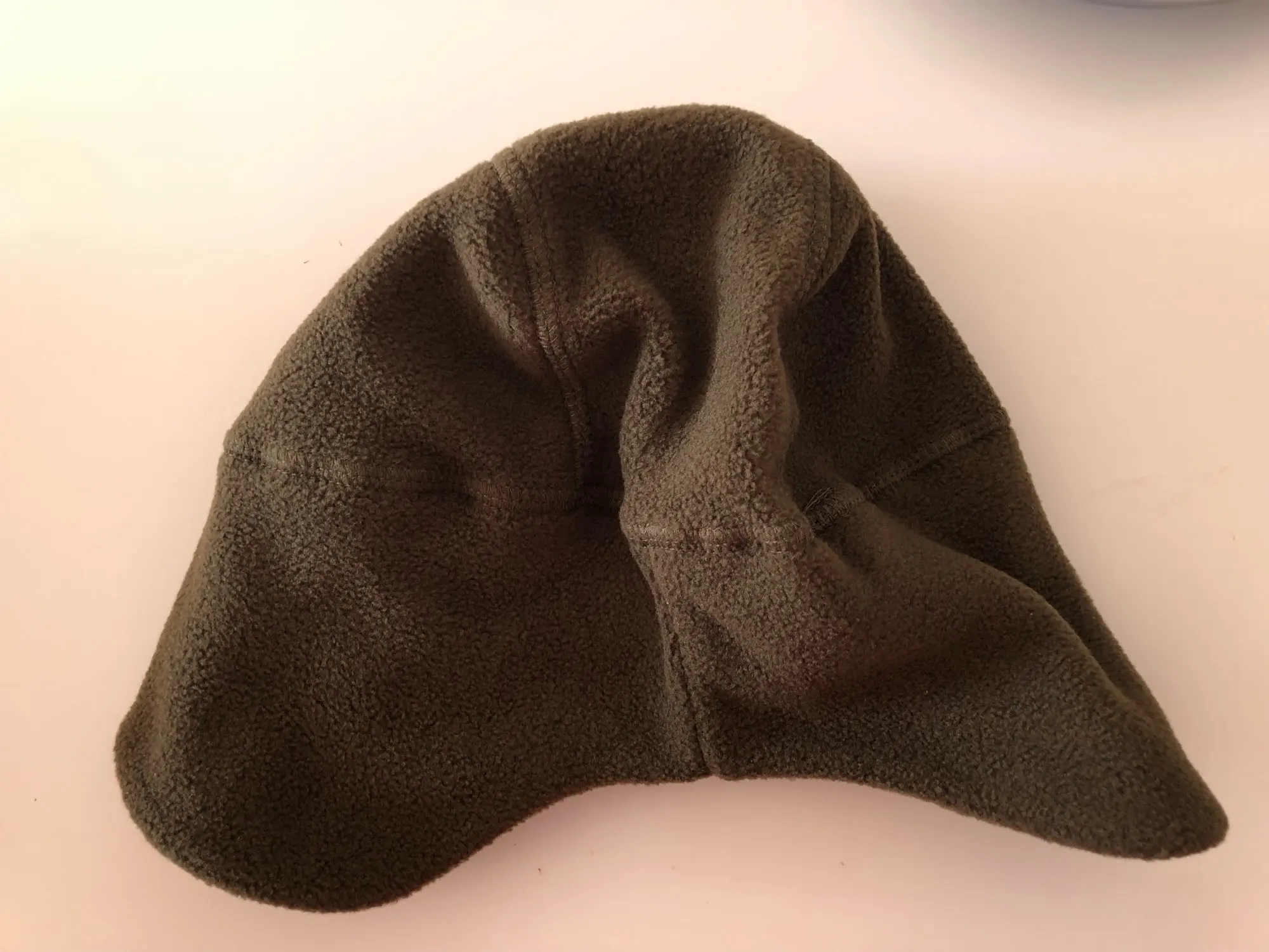 Доставка месяц. На мою большую голову села отлично, впритык, но не давит. Уши закрывает полностью с запасом. Нижняя часть вокруг головы имеет двойной слой, на макушке один слой флиса. Ушки можно откинуть вверх. Весит 35 грамм.