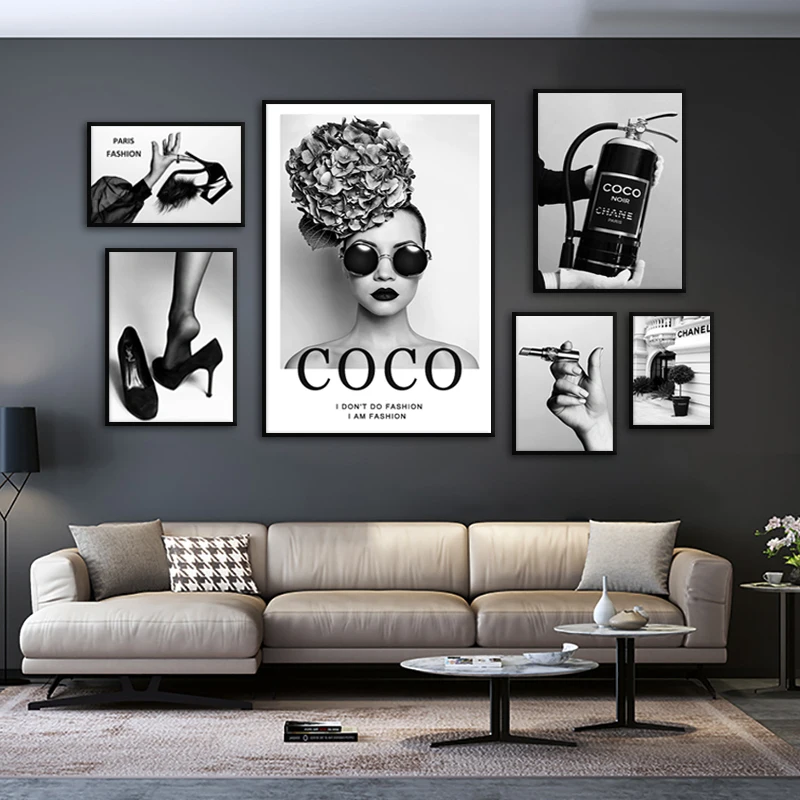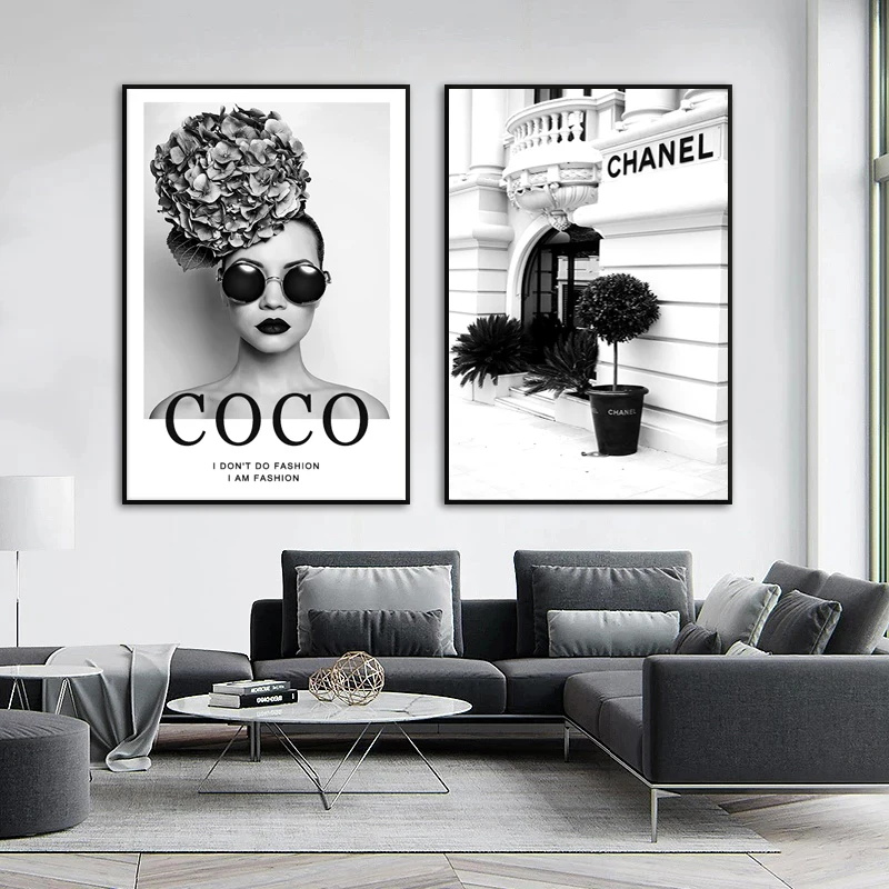 Черно-белые модные картины цветок женщина плакат и печать Коко цитаты настенная Картина на холсте для гостиной домашний декор Куадрос