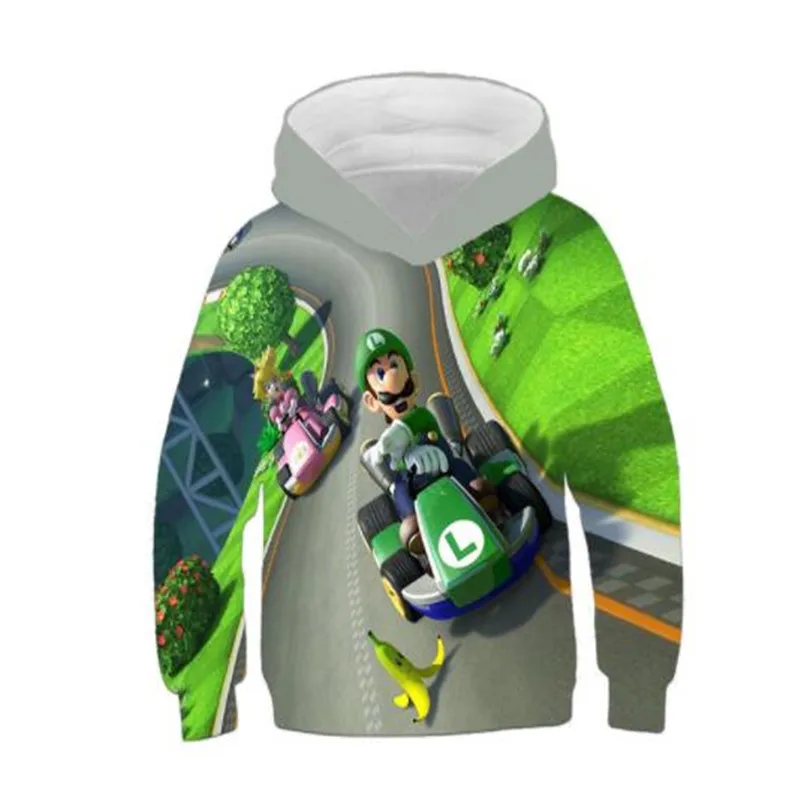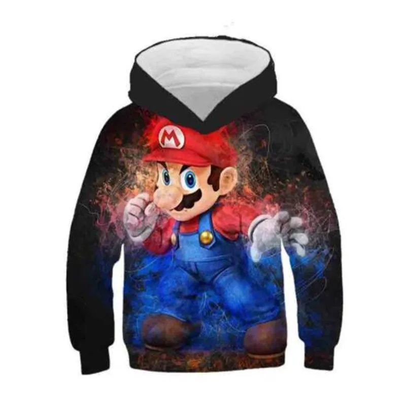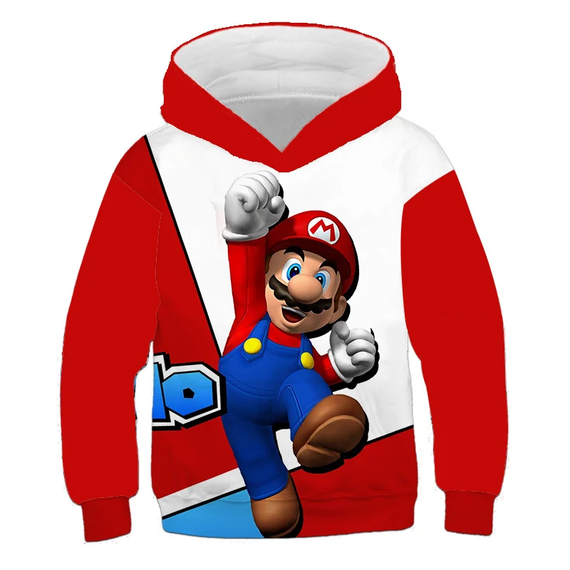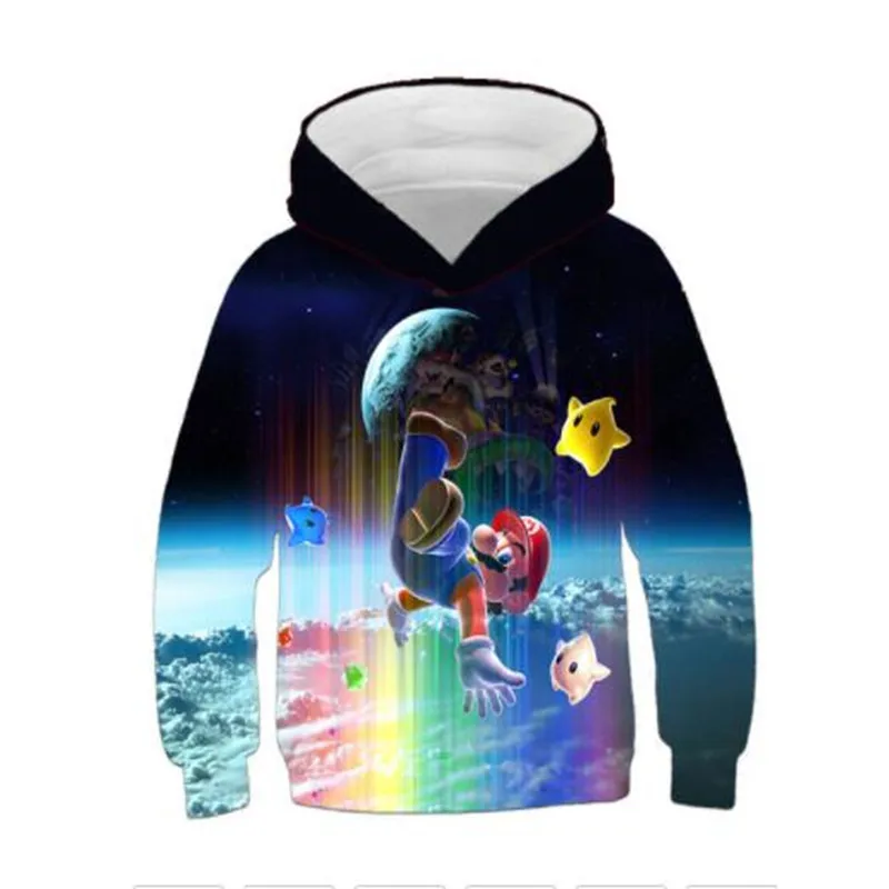 Свитшот с длинным рукавом и капюшоном для мальчиков и девочек, одежда с 3D мультяшным принтом в стиле Super Mario