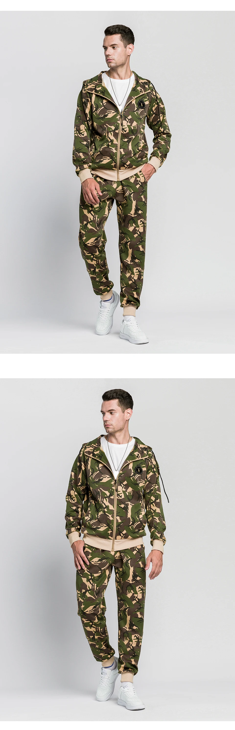 Мужской спортивный костюм с капюшоном, повседневный Камуфляжный кос...