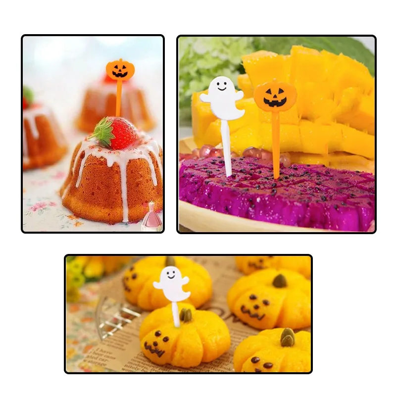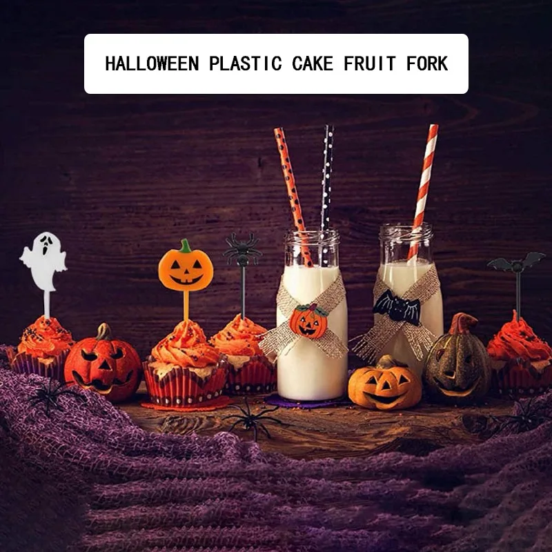Пластиковые Фруктовые палочки для Хэллоуина, Детские Мультяшные вилки для торта, десерта, еды, бенто, праздвечерние чные украшения для Хэллоуина, посуда для дома, 1018 шт.