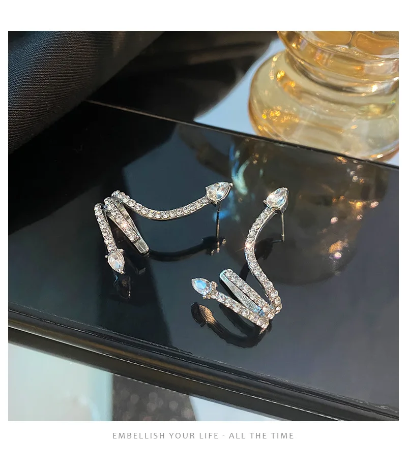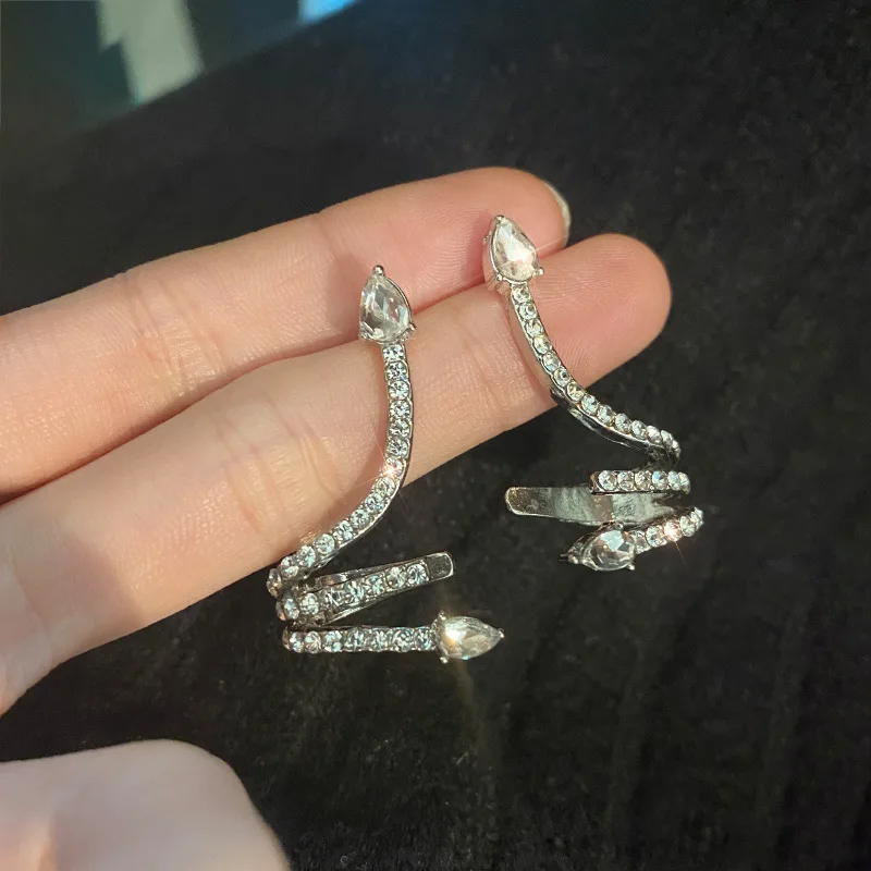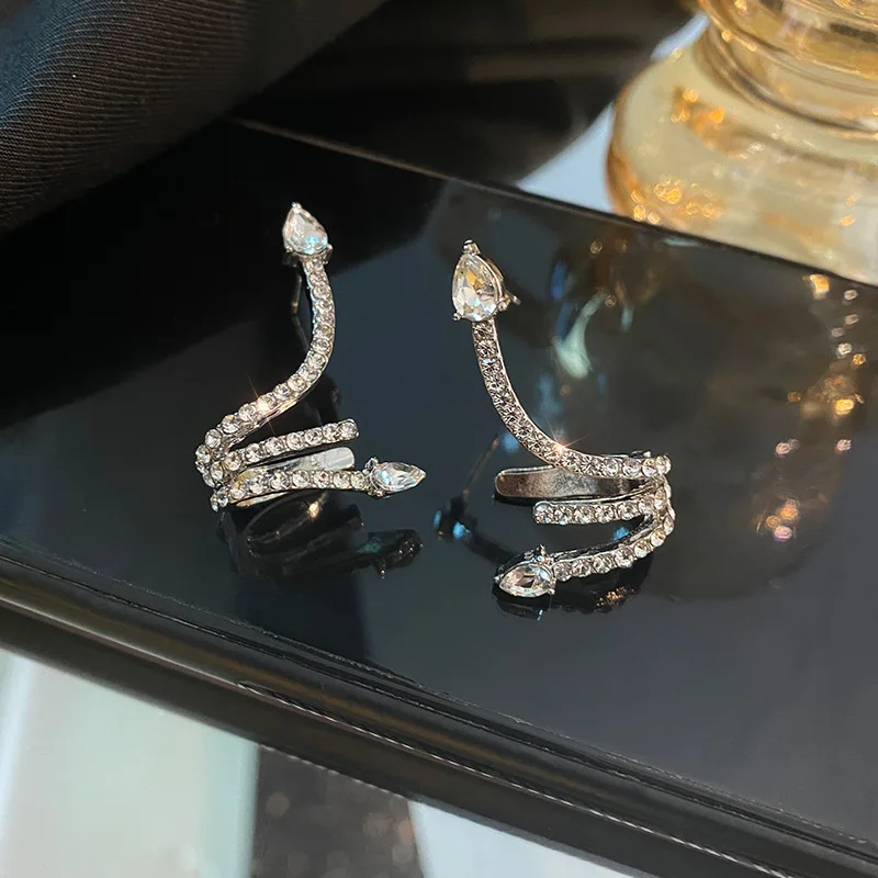 Женские серьги в форме змеи, свадебные ювелирные изделия с инкрустацией из блестящего фианита
