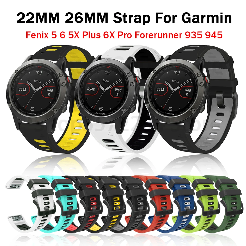 Ремешок силиконовый для смарт-часов Garmin Fenix 6 6X Pro 5X 5 Plus 3 3HR Forerunner 935 945