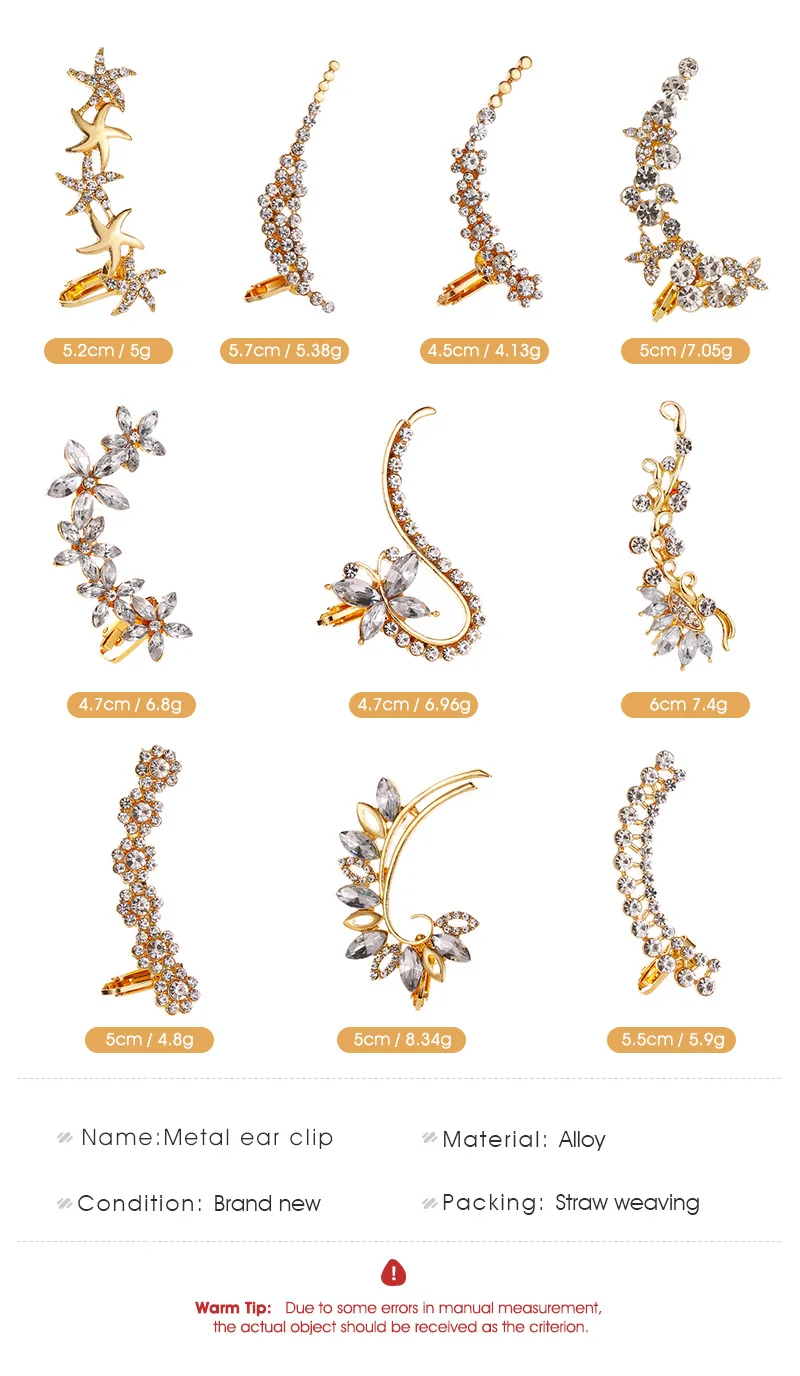 1 шт. богемные стразы, каффф для ушей без пирсинга, клипсы для ушей...