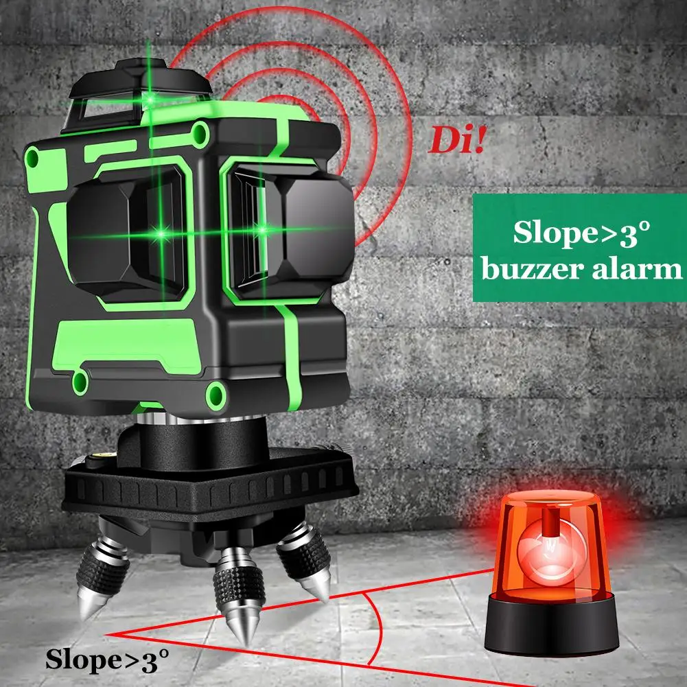 Самонивелирующийся зеленый лазерный уровень, 12 линий, 360 градусов