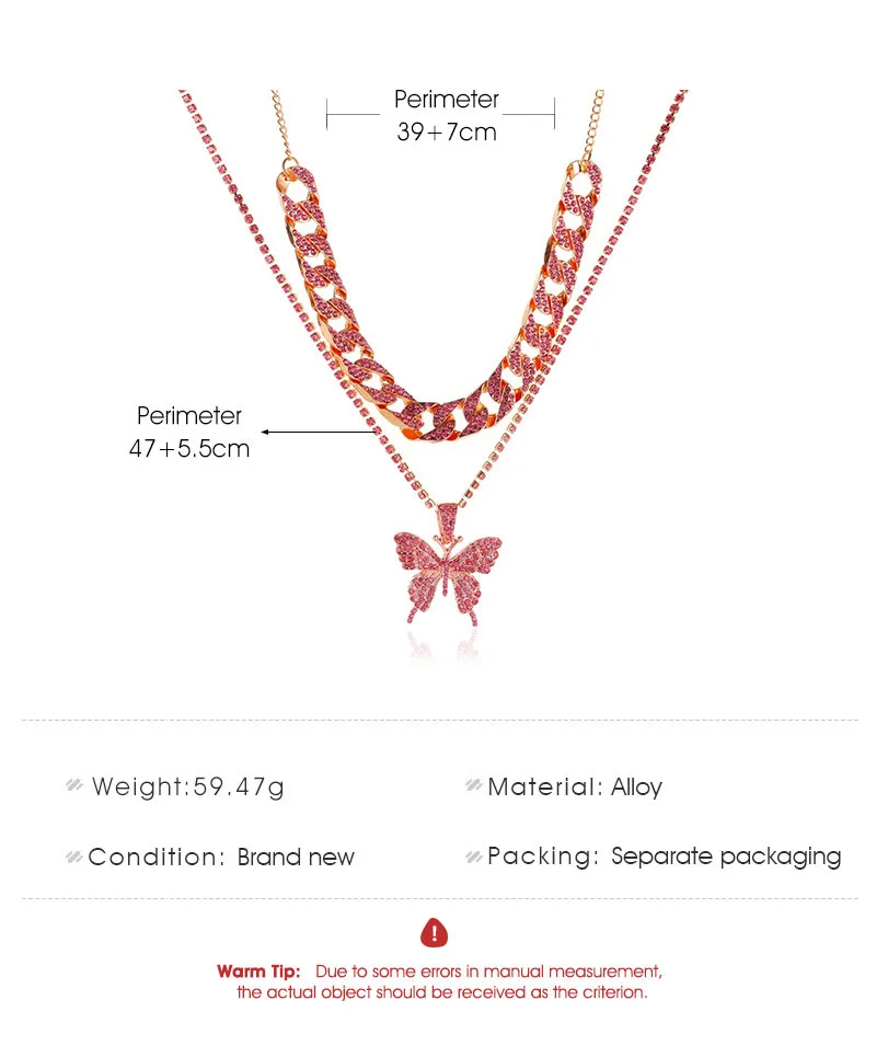 Многослойное ожерелье с большой бабочкой для женщин кубинская цепь ...