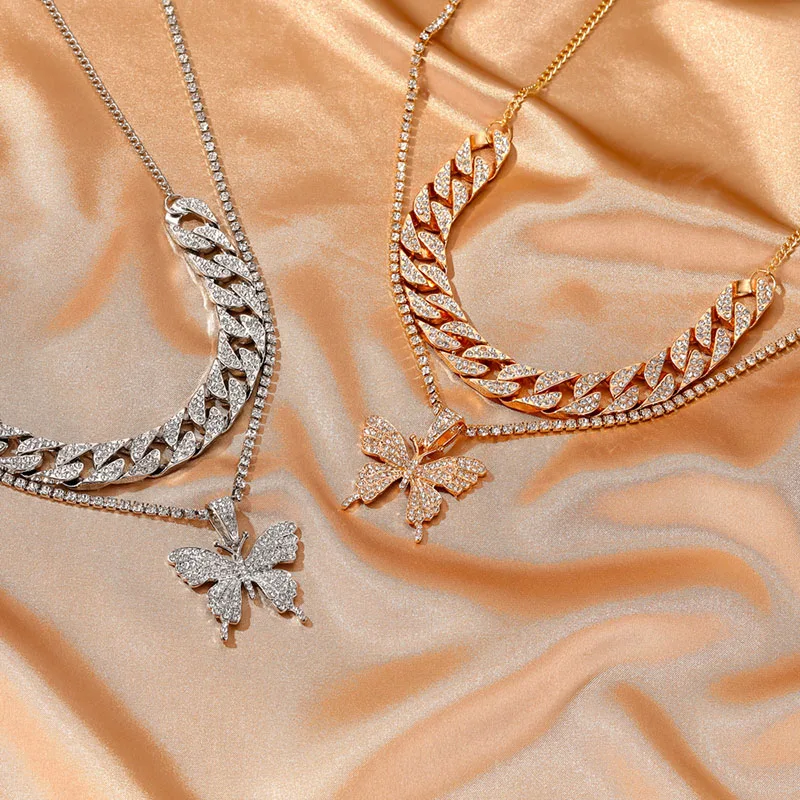 В стиле панк льдом бабочка колье для женщин серебряная цепочка коль...