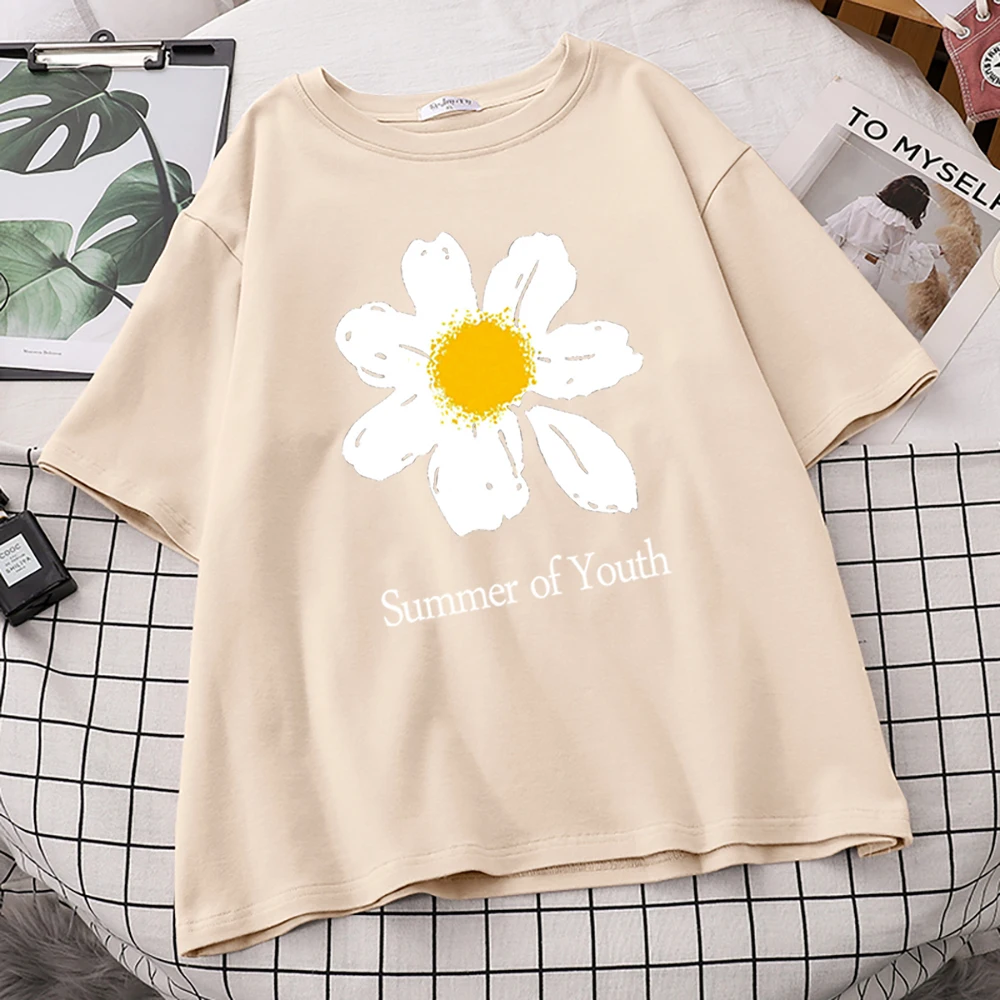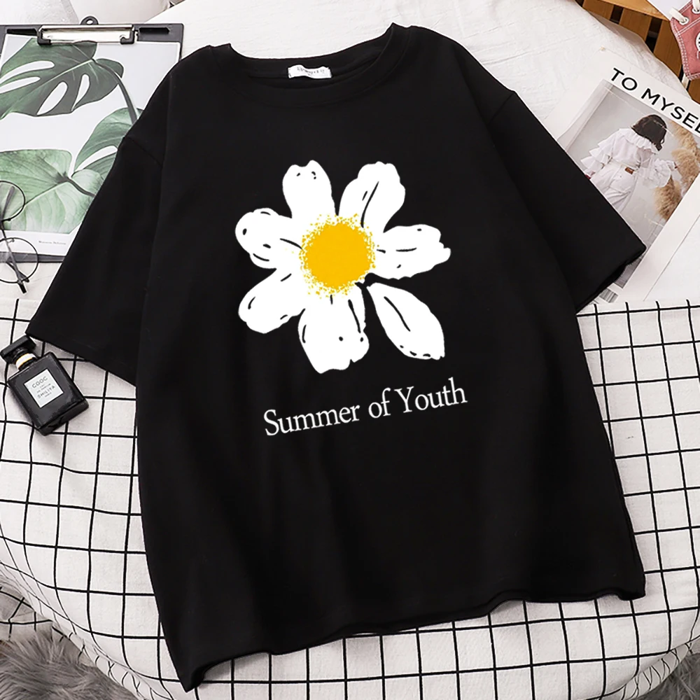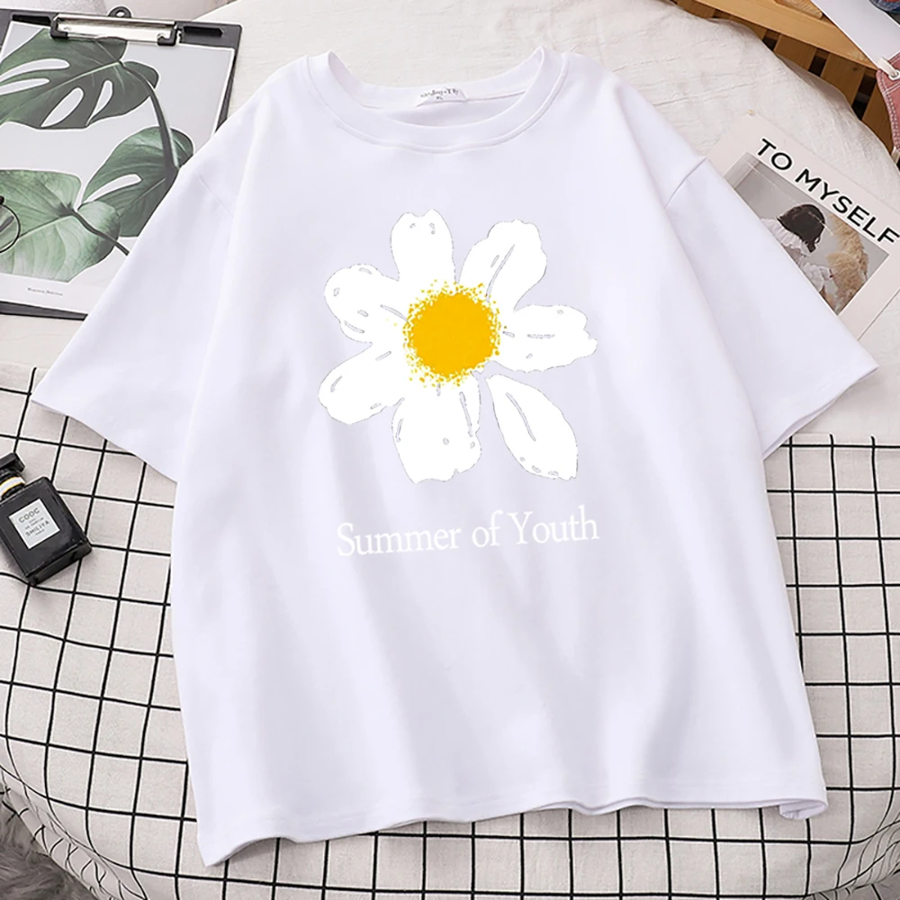 Женская футболка с принтом маргаритки, футболка в стиле хип-хоп с коротким рукавом, в стиле Харадзюку, лето 2021