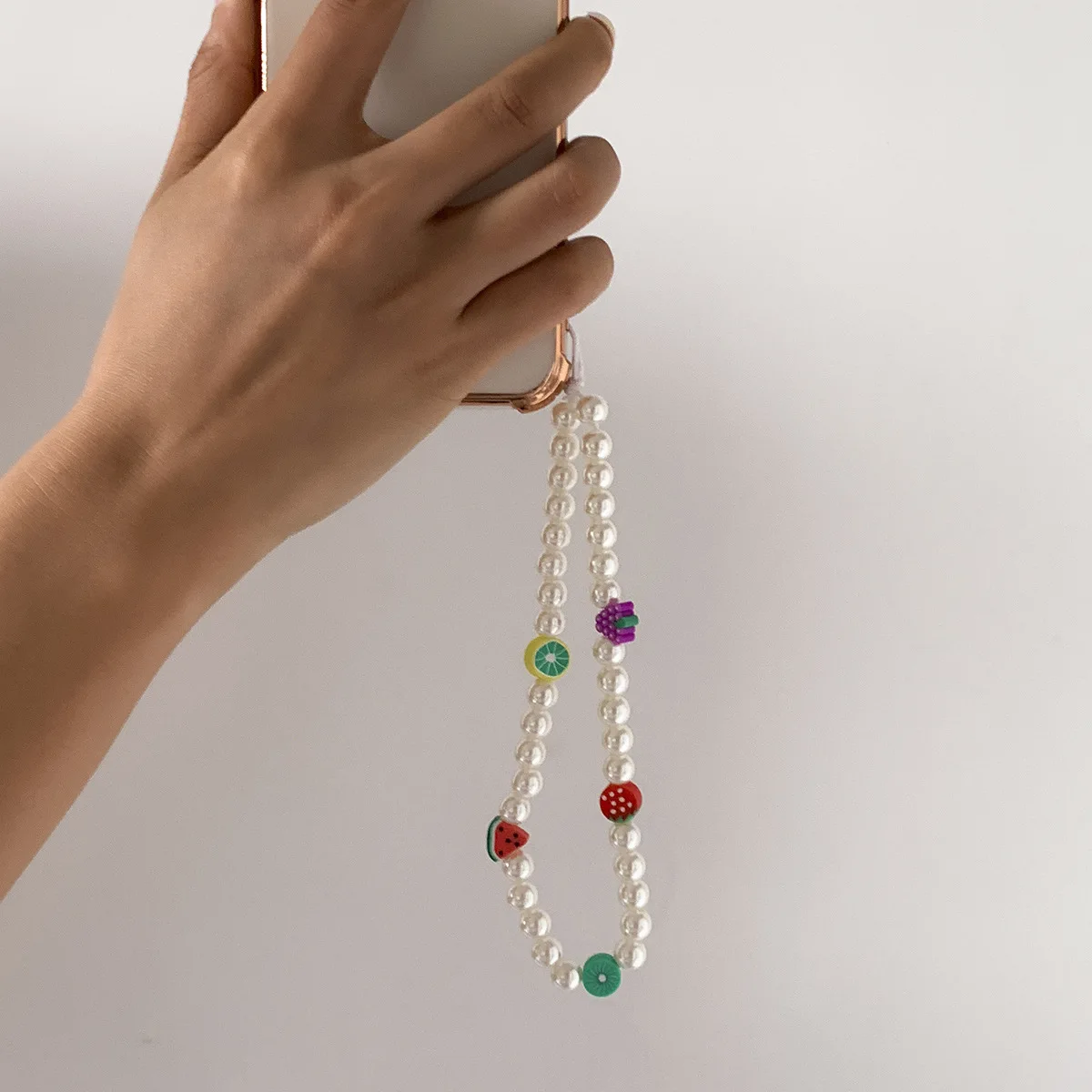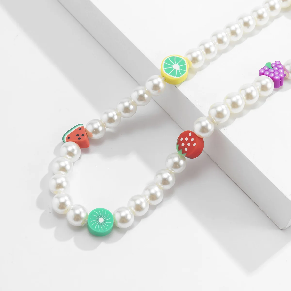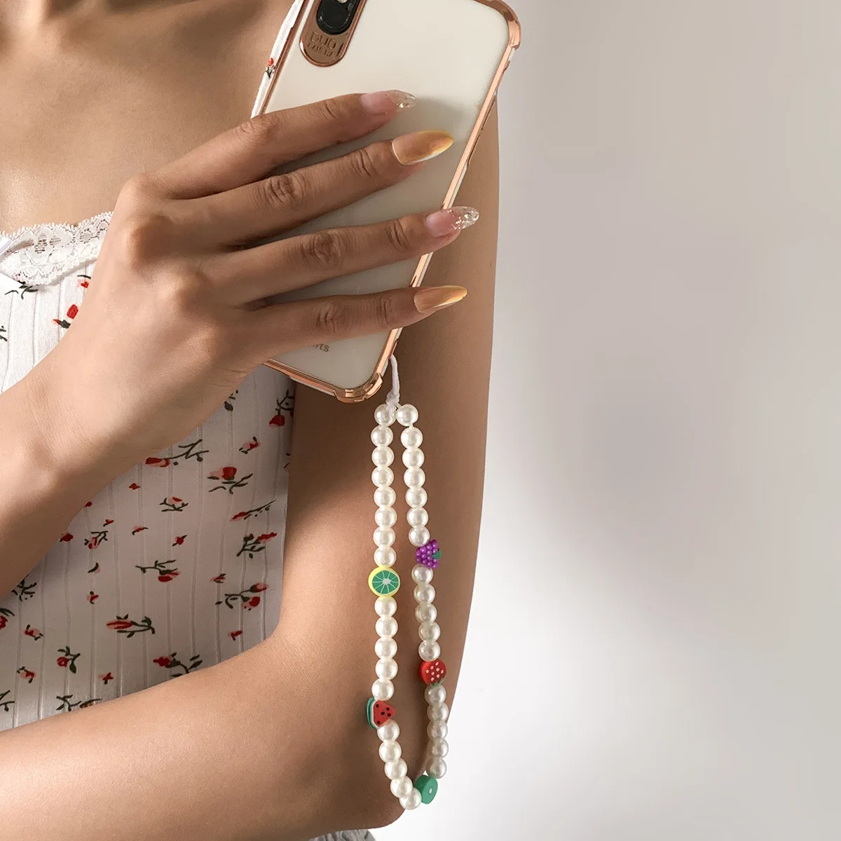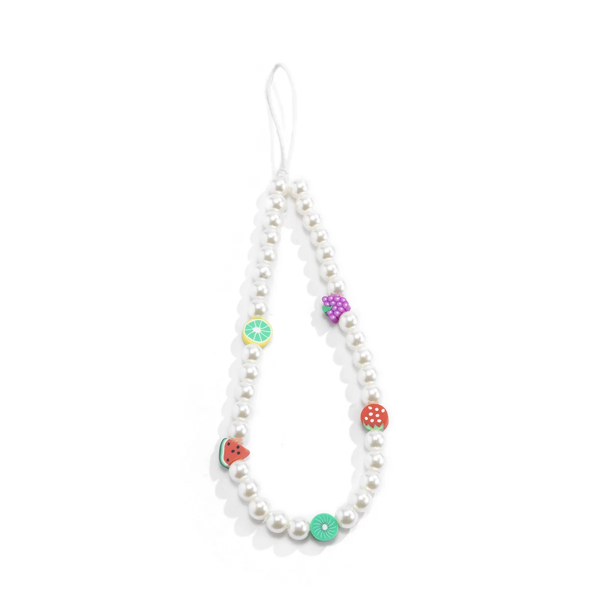 Новинка 2021, модная яркая цепочка с бусинами в виде фруктов, искусственная цепочка, подвеска ручной работы с защитой от потери, акриловый шнур для женщин и девочек