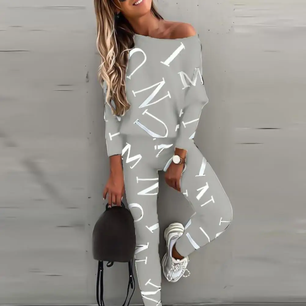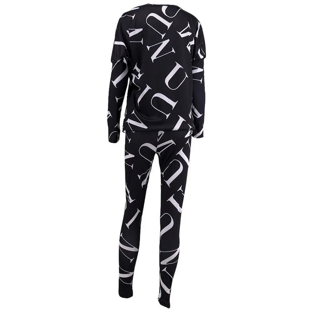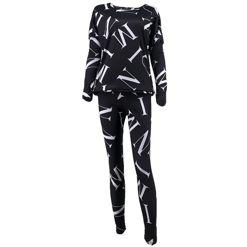 Женский спортивный костюм, комплект из 2 предметов, Повседневная Блузка с длинным рукавом и буквенным принтом, весна-осень 2021