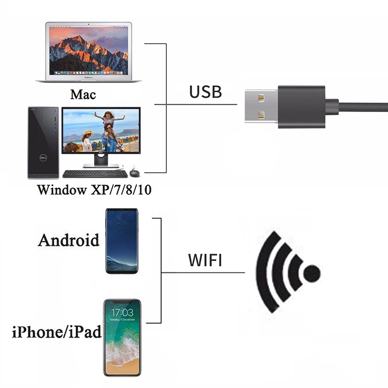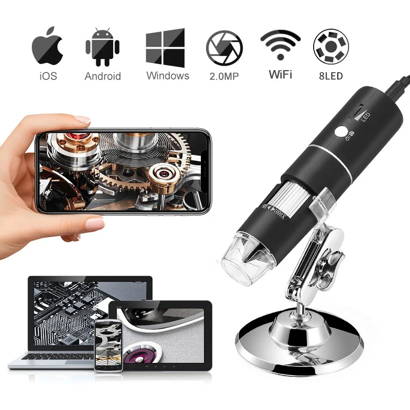 3. Широкая совместимость:Этот цифровой Wi-Fi микроскоп совместим с IOS 8,0 или новее версии, Windows XP/Vista/7/8/10, Mac OS X 10,8 и новее, Android 4,3 или новее. Подходит для iPhone, iPad, Samsung, Huawei, других смартфонов, ПК, ноутбуков.