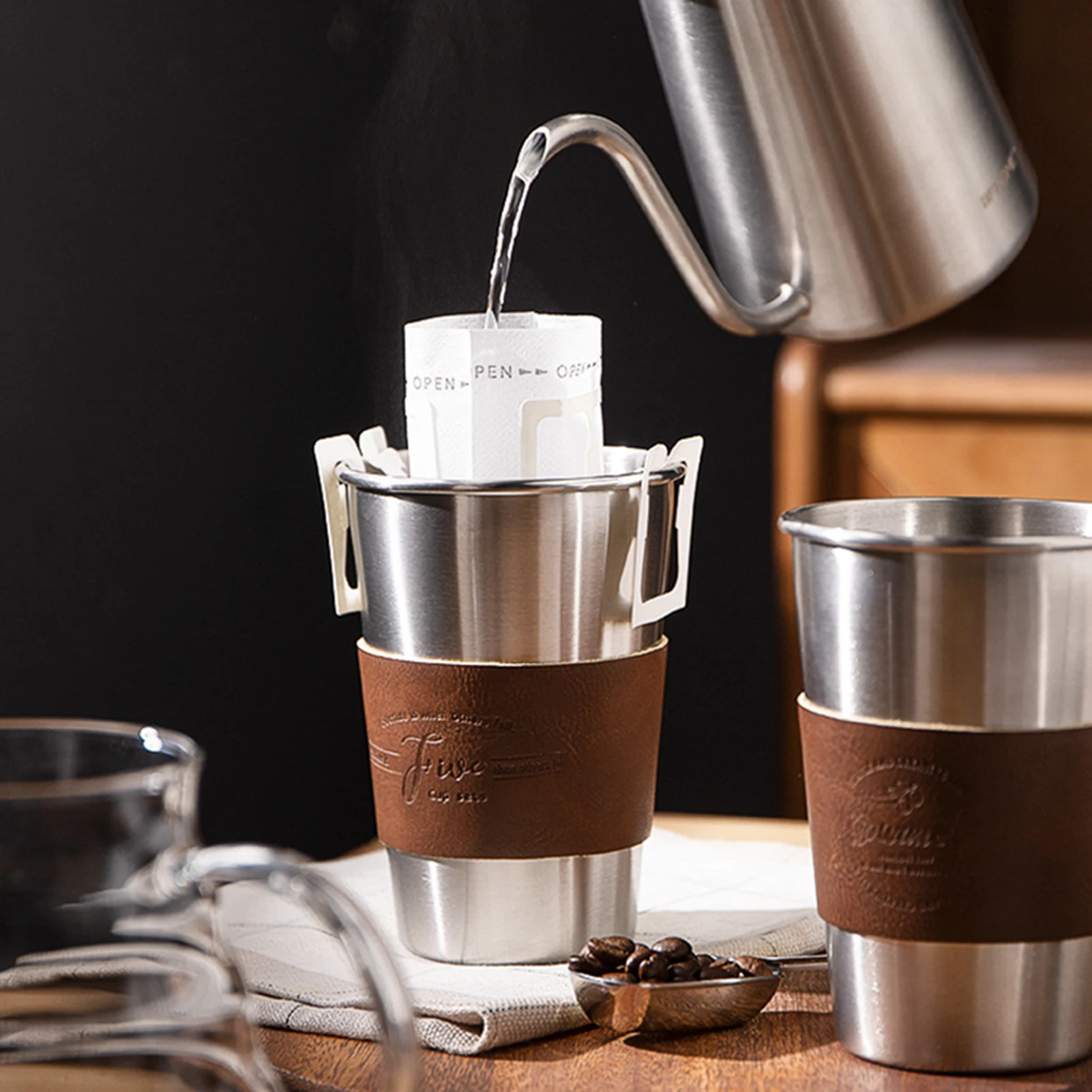 Походная кружка для питья, дизайнерская чашка из нержавеющей стали с ручкой, портативная дорожная кружка для питья, чайная кружка 480 мл, контейнер для каши и лапши, инструмент