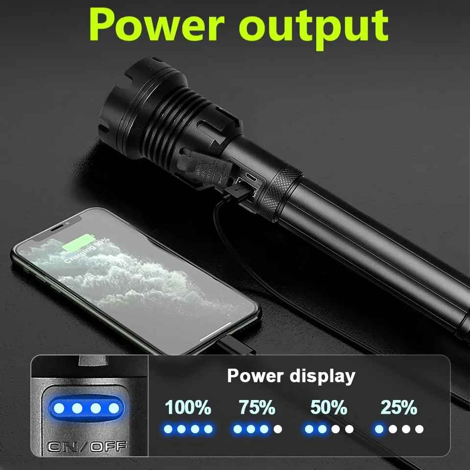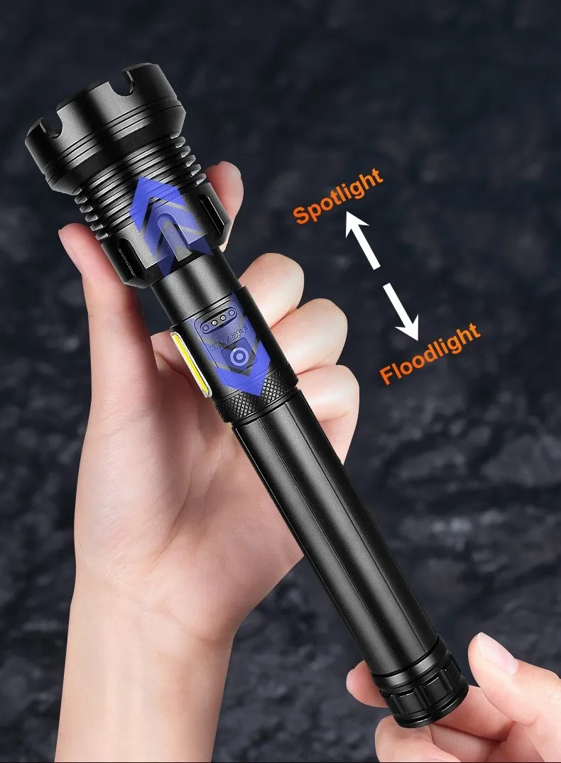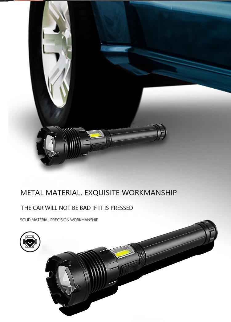 • Модель светодиодный бусины: CREE XHP50.2• Диапазон: 300-500 метров• Режим масштабирования: телескопический зум• Режим переключения: 5 режимов (High - Medium - Low - SOS - Flash)• Тип батареи: 26650 или 18650• Время освещения: 4-6 часов• Уровень водонепроницаемости: IPX-6• Цвет корпуса: черный• Материал: T6063-T6 авиационный алюминий• Размер: 16,8 см * 4 см * 3,3 см• Фонарь Вес нетто: 0,207 кг• Перезаряжаемый: микро-usb для компьютера, usb для автомобиля, usb-разъем для зарядки.
