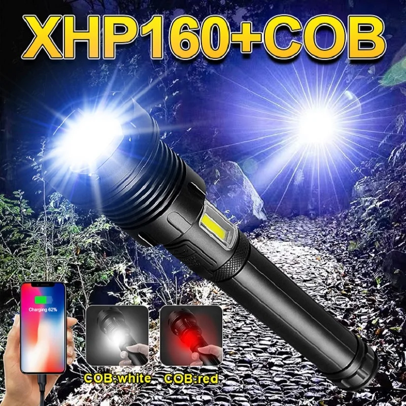 Новая улучшенная светодиодсветильник вспышка XHP160 Power ful 18650, мощный уличный фонарь COB XHP90, перезаряжаемый от Usb, яркий тактический фонарь
