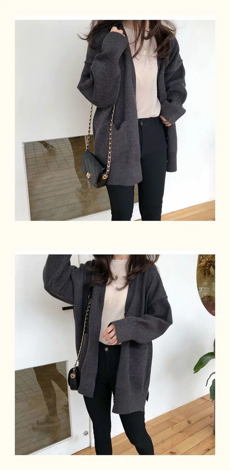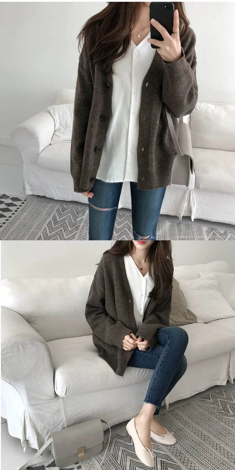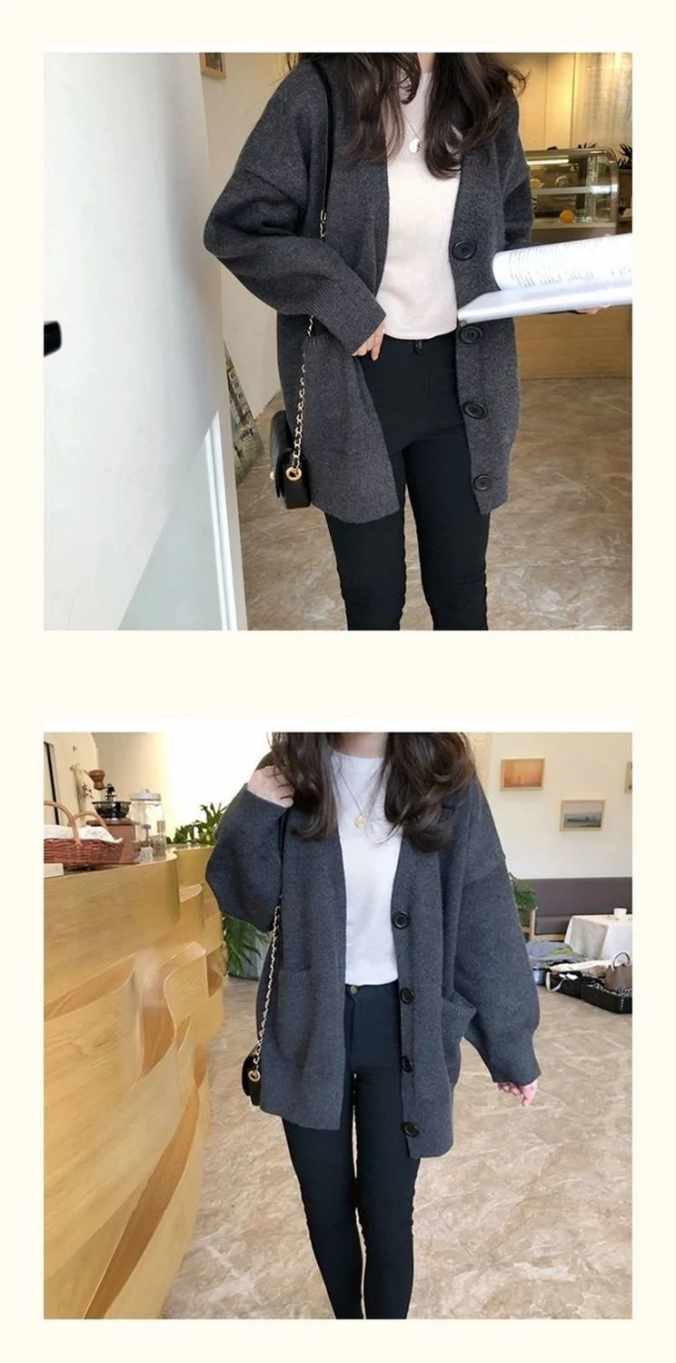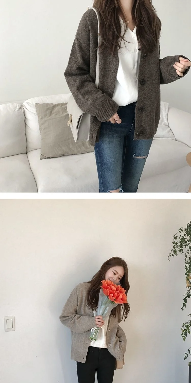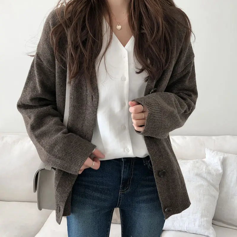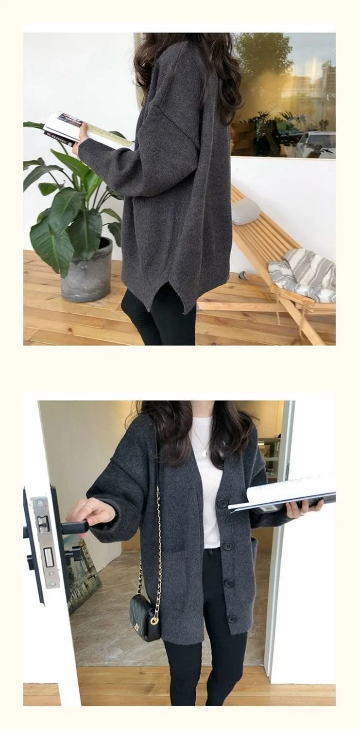 Женские свитера, кардиган, свитер, женский кардиган, осенне-зимний свободный свитер с V-образным вырезом, пальто, женские свитера