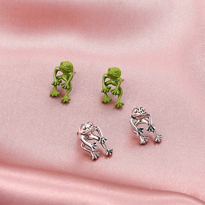 2021 винтажные необычные серьги-гвоздики в виде лягушки для женщин серебряного цвета геометрические зеленые забавные женские серьги в виде животных крутой милый подарок на Хэллоуин
