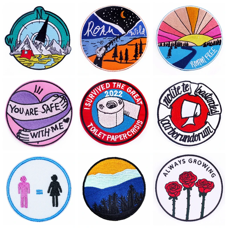 Вышитые нашивки для одежды, буквы круглой формы, разноцветные полоски, наклейки с утюгом, звездное небо, наклейки, цветочные нашивки, Декор