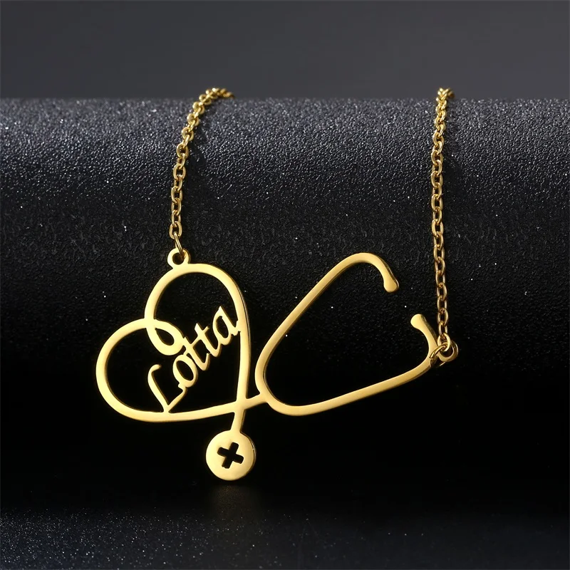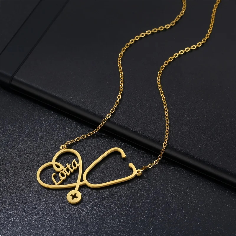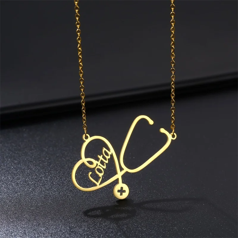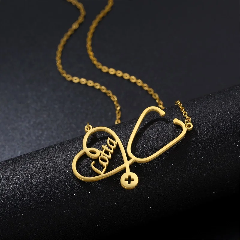 Ожерелье женское из нержавеющей стали, ювелирный стетоскоп с индивидуальным именем медсестры, студента и медсестры, Очаровательная цепочка с уникальным сердцем