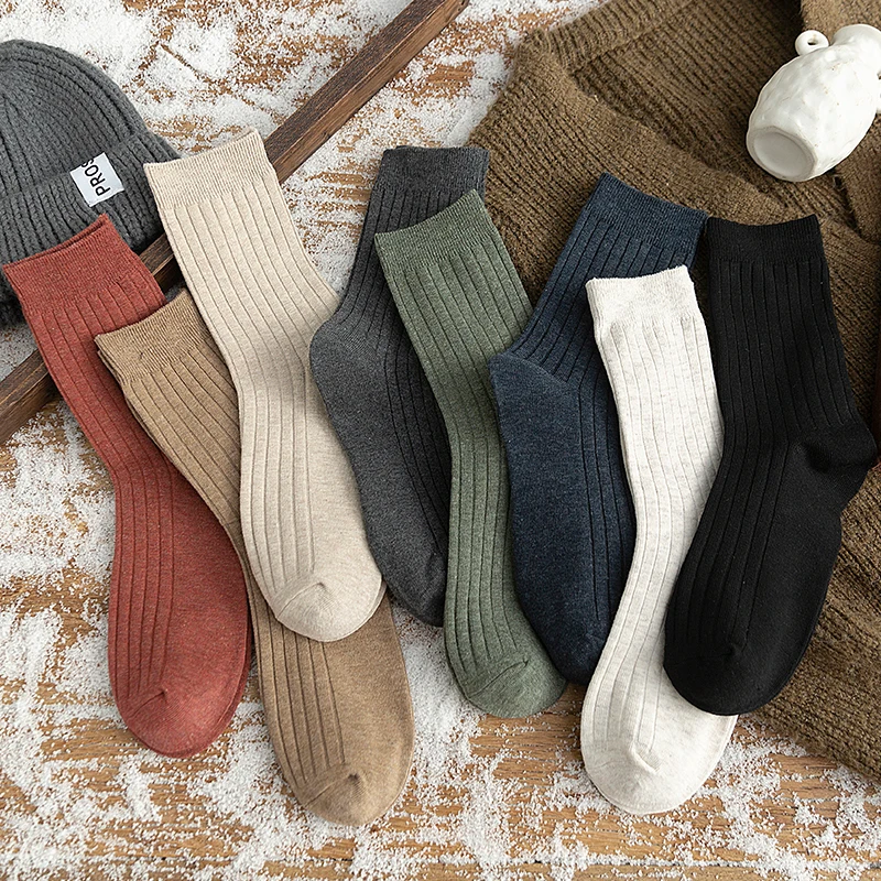 5 пар, Лидер продаж, новинка, Осень-зима, мужские теплые носки для мужчин, хлопок, Harajuku, полосатые длинные носки, Модные Белые Повседневные носки без пятки