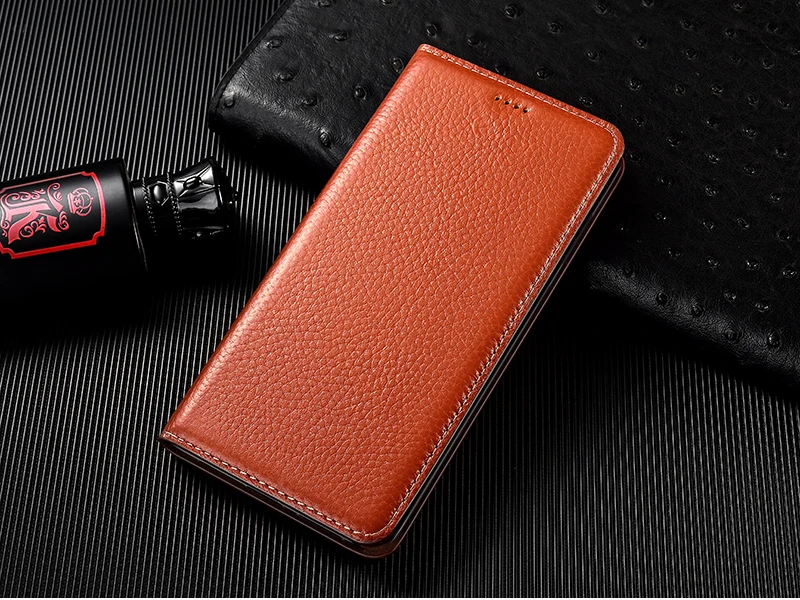 Magnet Natural Genuine Leather Skin Flip Wallet Book Phone Case Cov...