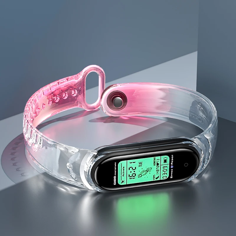 Ремешок прозрачный для Xiaomi Mi Band 6 5 4 3, меняющий цвет при со...