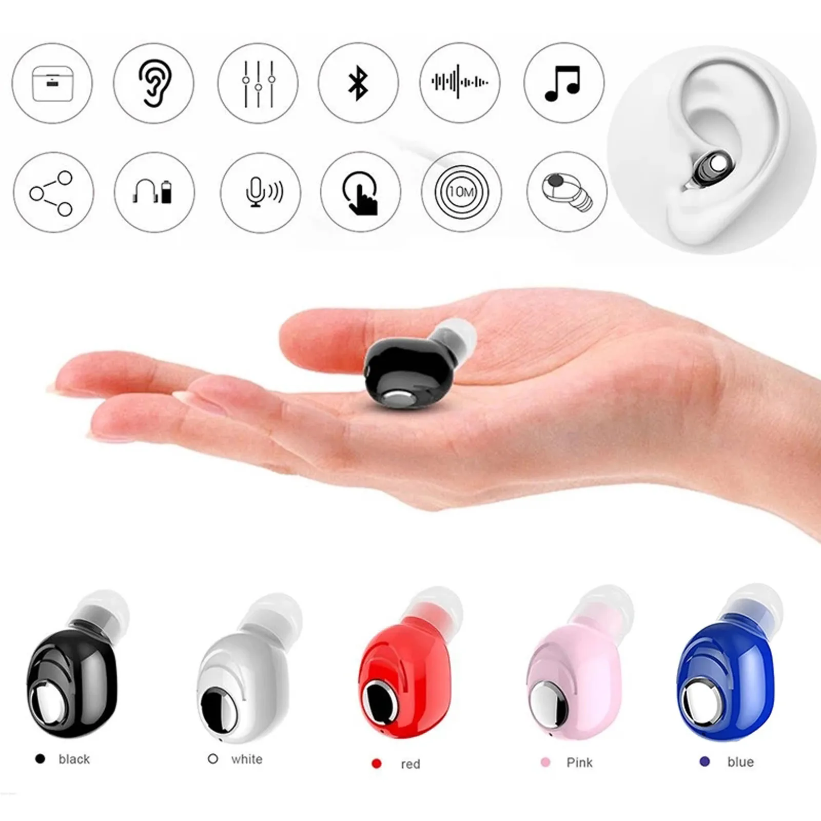 Bluetooth-гарнитура 5,0, беспроводные наушники-вкладыши, стереонаушники-вкладыши, мини-наушники с глубокими басами, стереонаушники для спорта с микрофоном