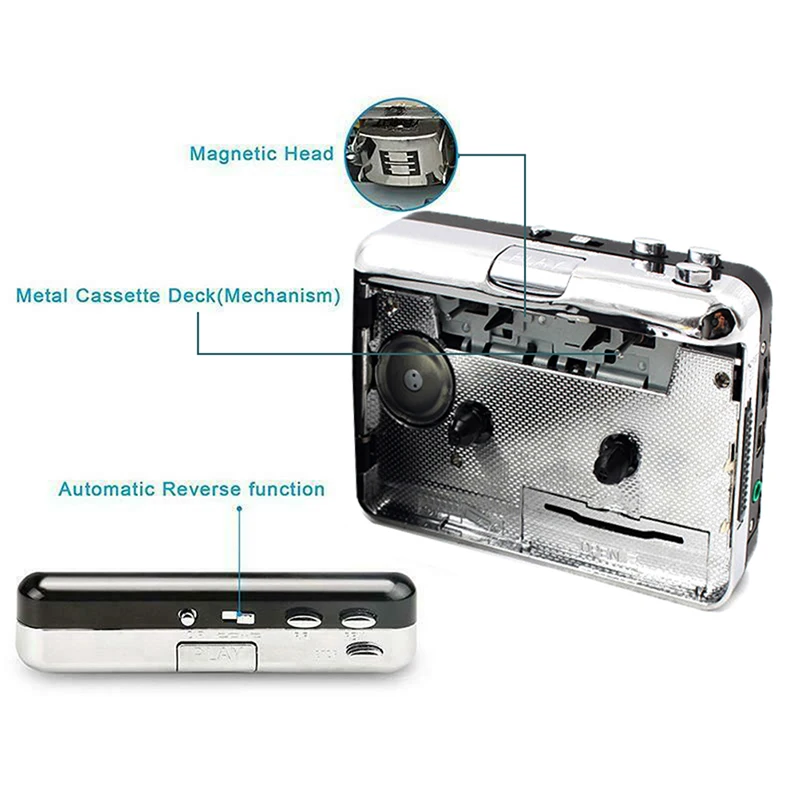Основные характеристики:-Легко переносить любую кассетную ленту на аудио CD или MP3-Запись записи записывается на аудио CD-Автоматическая остановка записи после Заданного количества времени и разделение записи на отдельные аудиотреки-Удаляет шипение, звук щелчков и другие шумы-Сохранены как WAV или MP3 аудио файлы-Портативный дизайн позволяет играть и переносить в любом месте-Подключи и работай с питанием от USB-Аудиовыход позволяет слушать стерео, наушники или другие акустические системы
